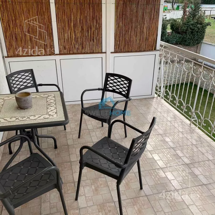 Ima 4 sobe, dva kuptila, terasu i pripradajuće natkriveno parking mesto u dvorištu kuće, sa električnom kapijom na daljinski..