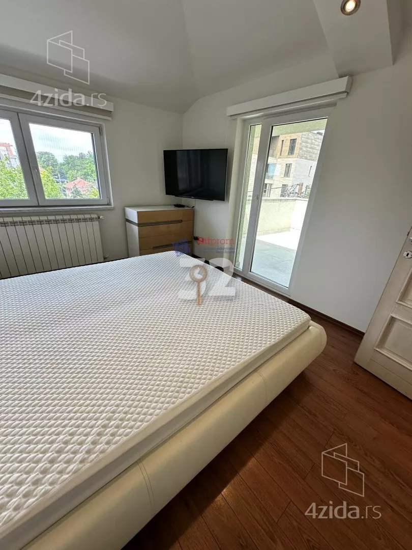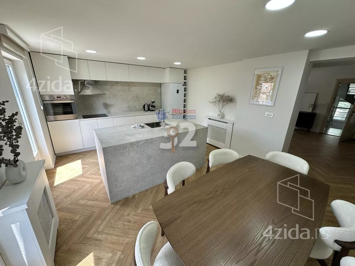 . Senjak, great location! Completely separate, sunny and modern apartment on two levels, furnished. Lower level: living room, kitchen, dining room, bathroom, terrace. Upper level: 3 bedrooms, bathroom, terrace. Safe parking in the yard. Suitable for diplomats, foreign company. Long term lease. S260615 Plaćanje mesečno, depozit i agencijska provizija u skladu sa uslovima poslovanja.