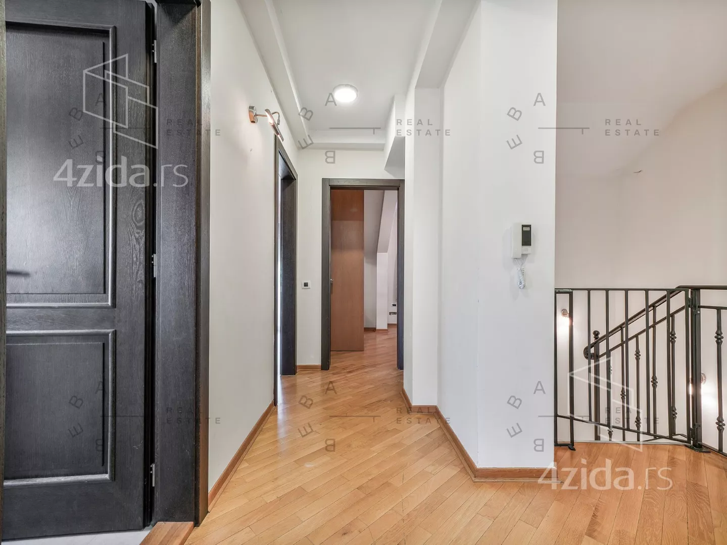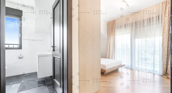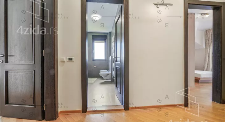Na donjem nivou nalazi se elegantan open space dnevni boravak sa trpezarijom i kuhinjom, radna soba, gostinski toalet i prostrani ulazni hol. Gornji nivo rezervisan je za privatnost i odmor - tri spavaće sobe, od kojih su dve master sobe sa en-suite kupatilima, dok treća soba ima sopstveno kupatilo, vešeraj i hodnik. Poseban ugođaj pružaju čak četiri terase sa očaravajućim pogledom na okolno zelenilo.