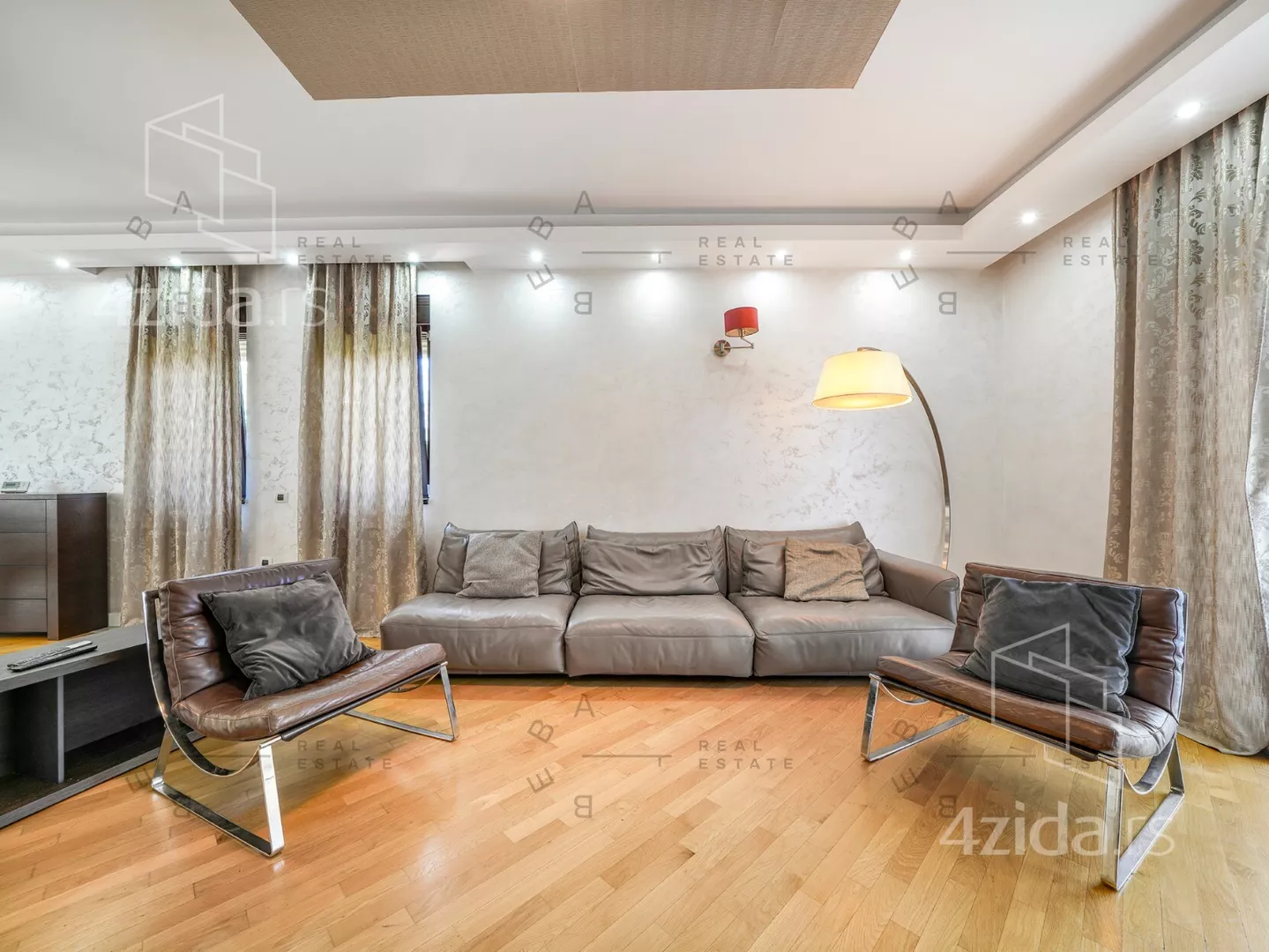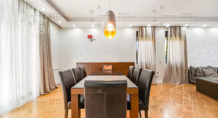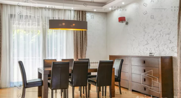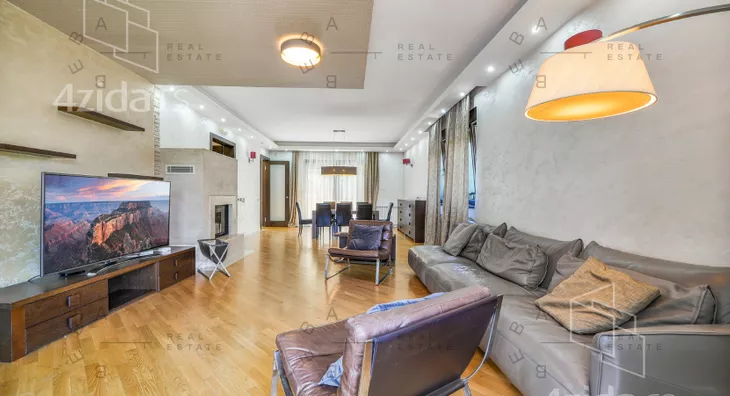 Stan se nalazi na prvom spratu male, ekskluzivne stambene zgrade i raspolaže površinom od 180 m², sa promišljenom organizacijom prostora i dvostrukom orijentacijom koja unosi obilje prirodne svetlosti. Izdaje se kompletno opremljen, s pažljivo biranim materijalima, nameštajem i tehnikom vrhunskog kvaliteta, sve u skladu s arhitektonskim konceptom stana.
