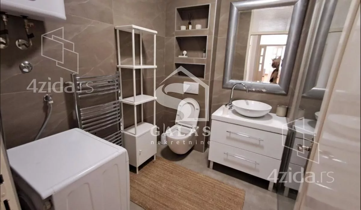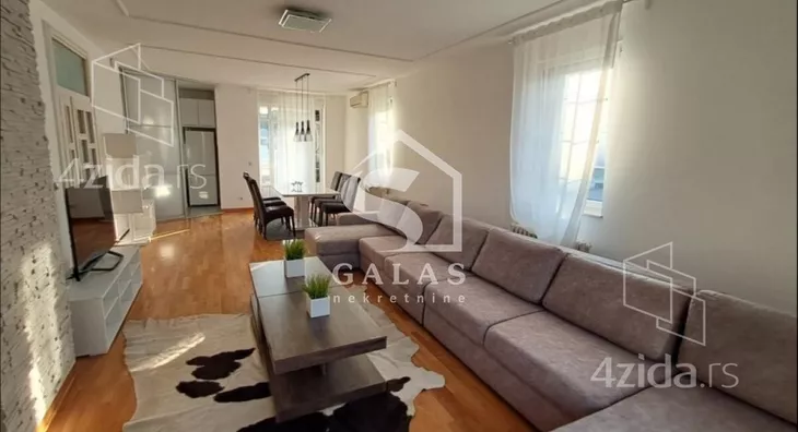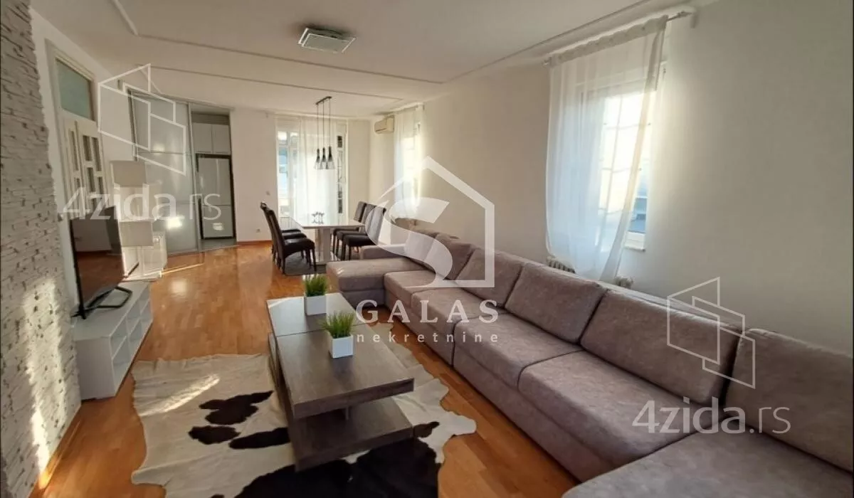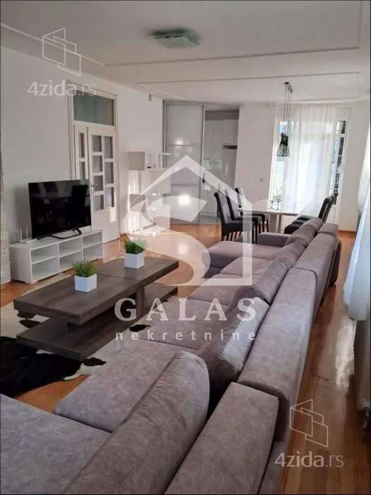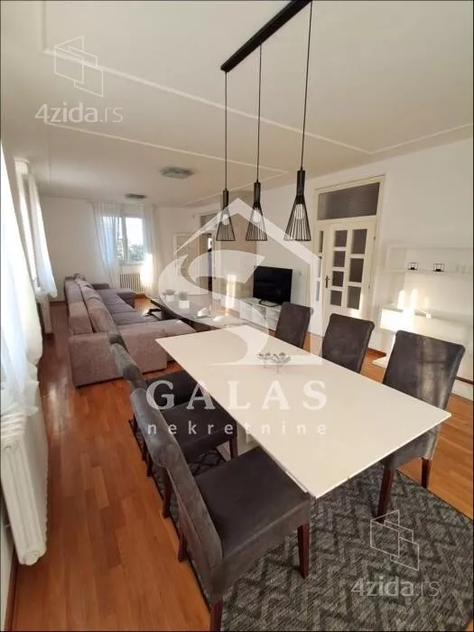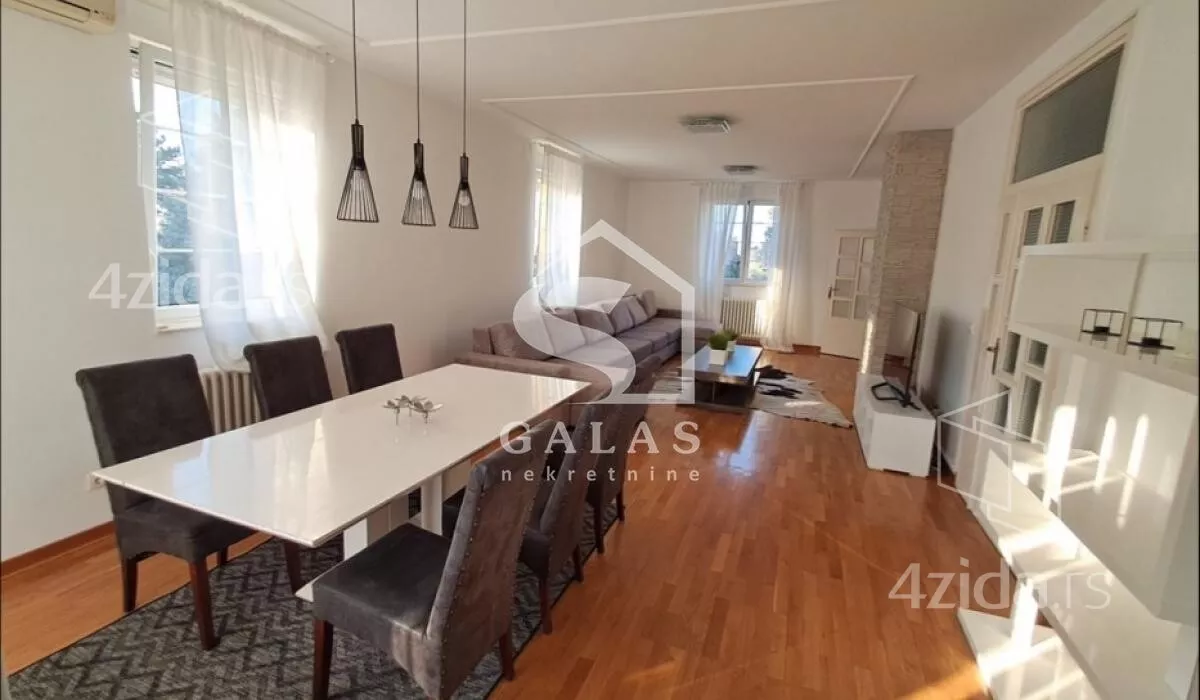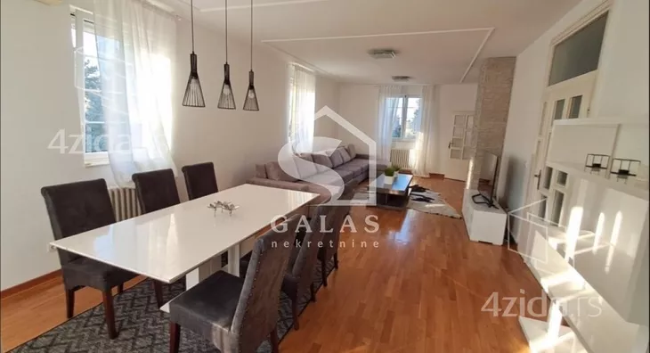 U prelepom delu Senjaka izdaje se prostran petosoban stan površine 135m2, smešten na prvom spratu manje zgrade sa svega tri stana. Stan se sastoji od velikog dnevnog boravka povezanog sa prostranom trpezarijom, iz koje se izlazi na veliku terasu opremljenu baštenskom garniturom — idealnu za odmor i uživanje. Tu je i odvojena, potpuno funkcionalna kuhinja, četiri spavaće sobe (od kojih jedna može biti i radna soba), kao i dva moderna kupatila sa tuš kabinama. Zgrada ima lift, grejanje je na gas, a u cenu zakupa je uključeno jedno natkriveno parking mesto u dvorištu. Stan pruža savršen spoj udobnosti, mirnog okruženja i praktičnosti, karakterističnih za prestižni Senjak. Agencijska provizija 50% od prve zakupnine.ID oglasa: 43040.