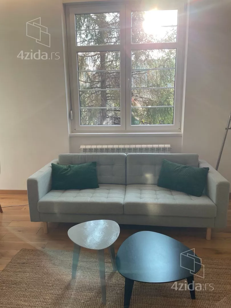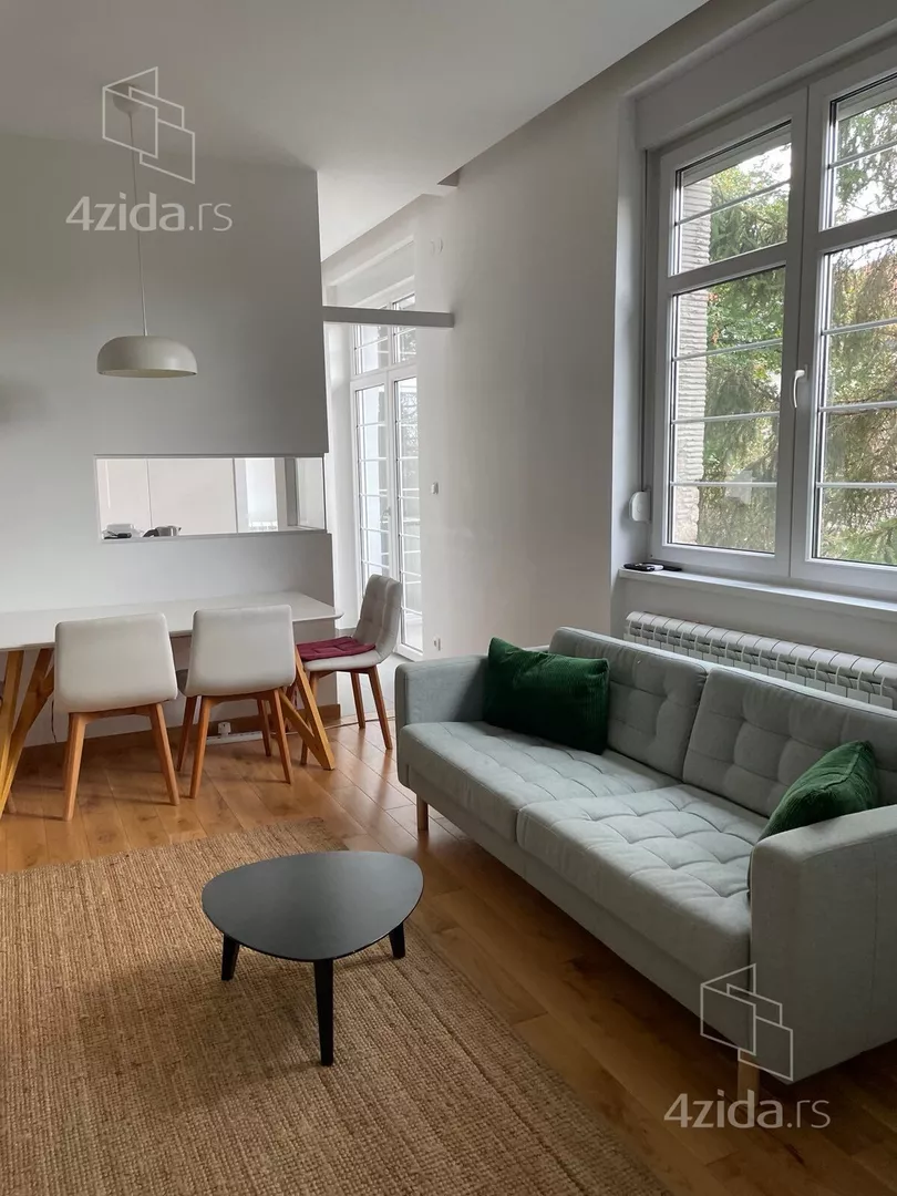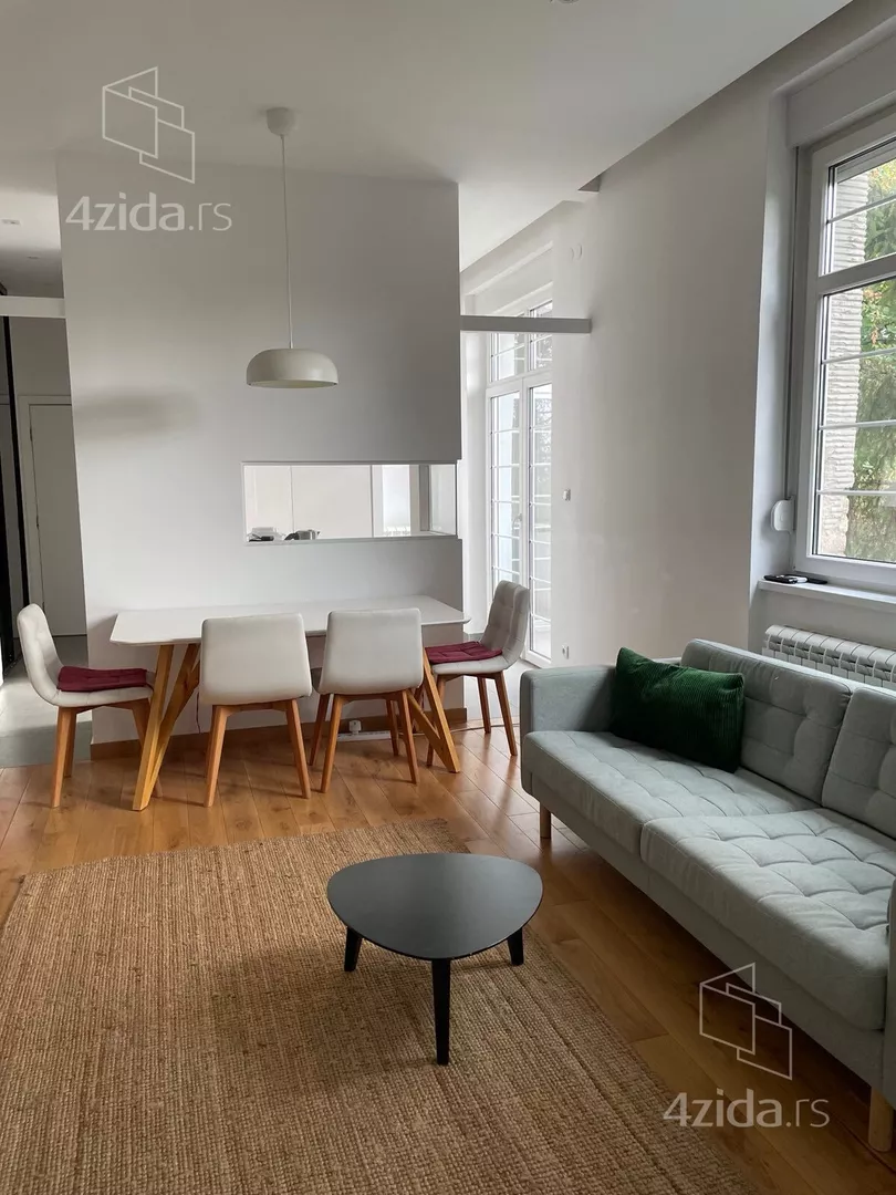 Izdaje se lepo uređen i potpuno namešten stan od 70m² u mirnoj ulici Čolak Antina na Senjaku, u neposrednoj blizini Francuske, Engleske i Nemačke škole. Nalazi se na prvom spratu manje zgrade bez lifta, sa samo četiri stana, što obezbeđuje mir i privatnost. Stan se sastoji od prostranog dnevnog boravka sa trpezarijom i potpuno opremljenom kuhinjom, dve komforne spavaće sobe, modernog kupatila i terase. Svetao je, prijatan i opremljen svim potrebnim uređajima za udoban život. Cena mesečnog zakupa iznosi 1.300 evra. Agencijska provizija: 50.00 % Opis provizije: + PDV