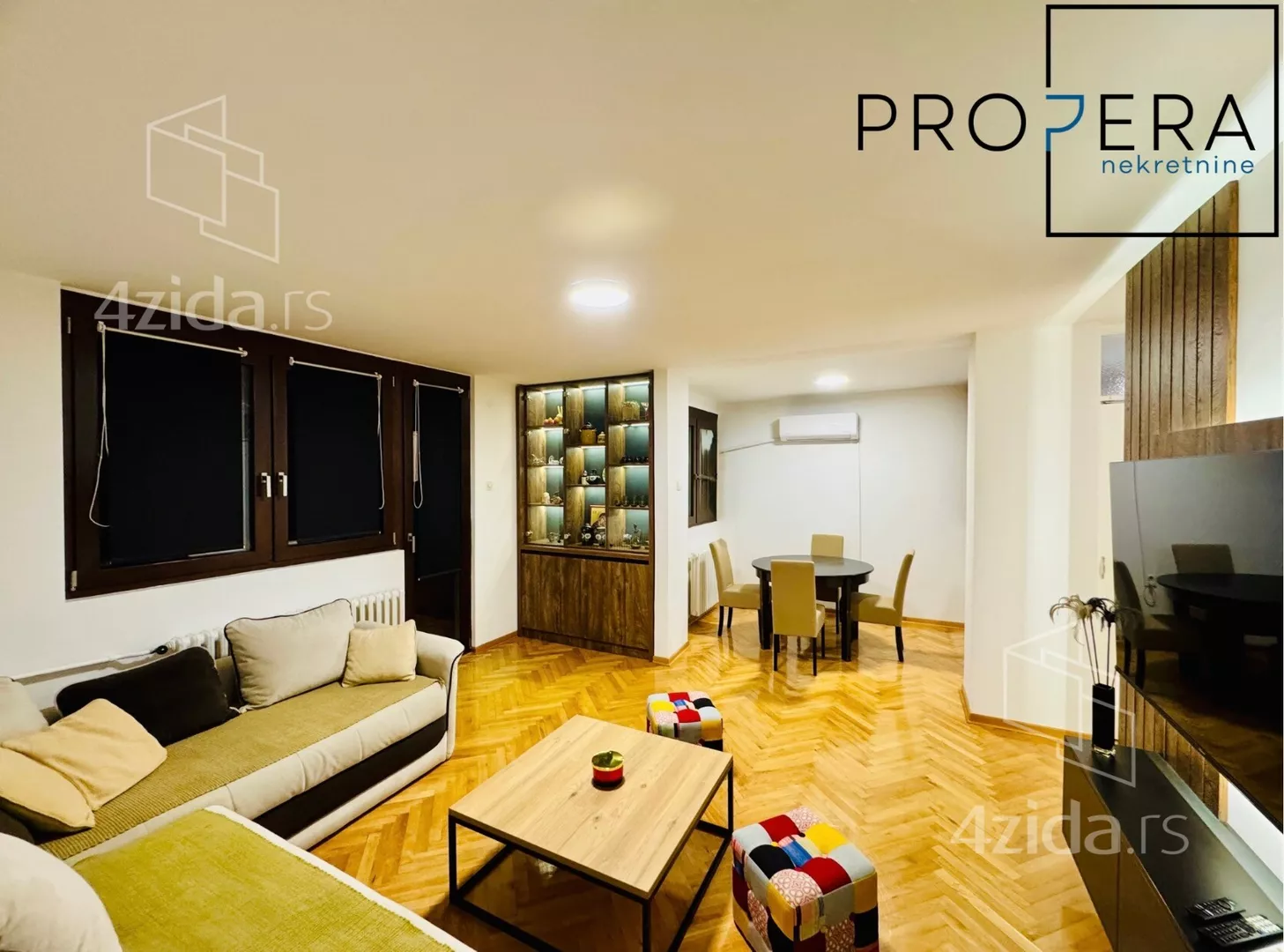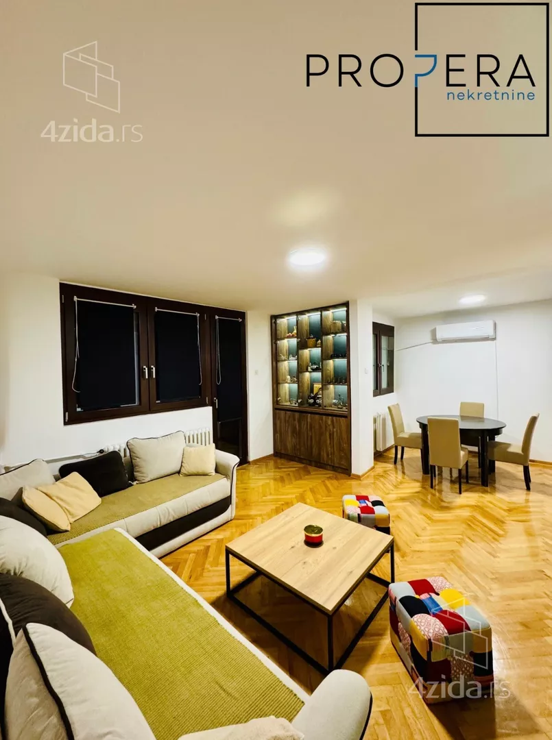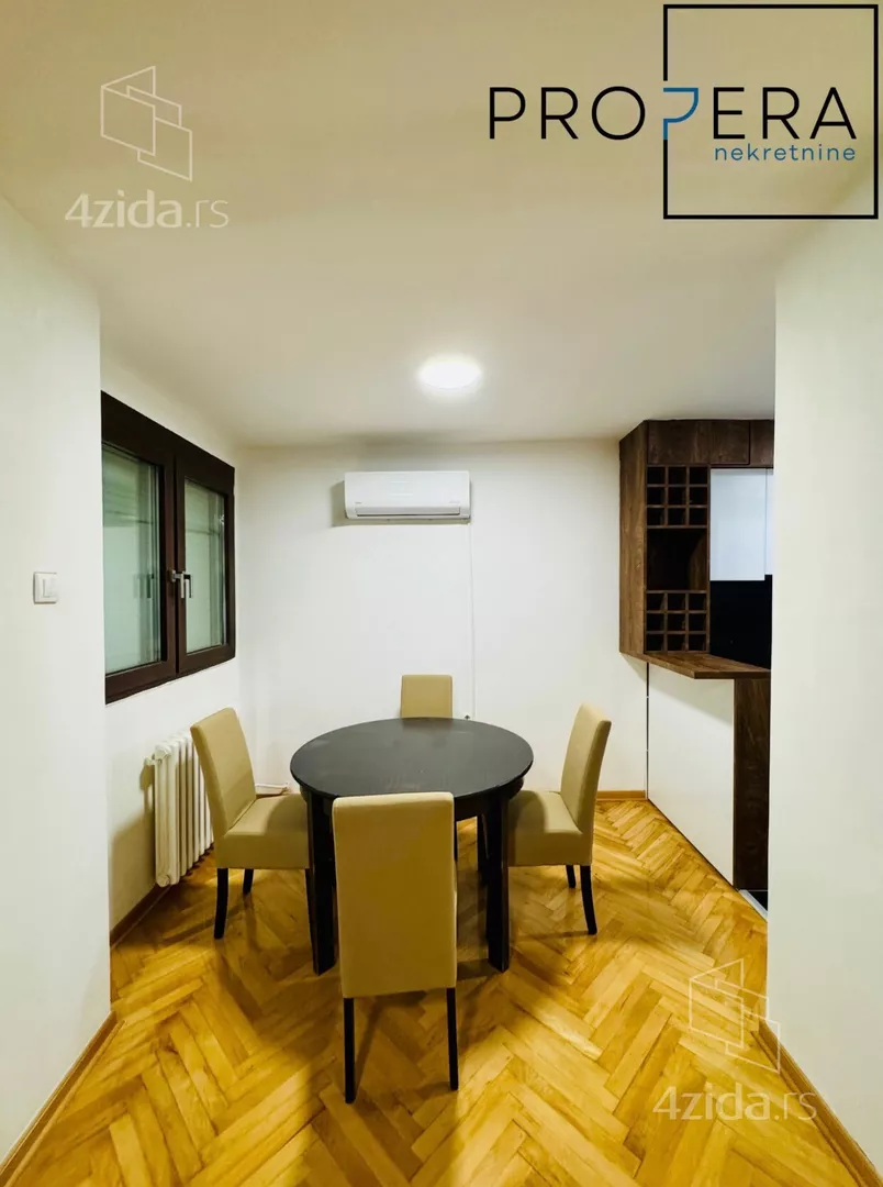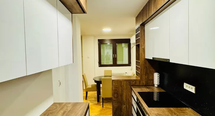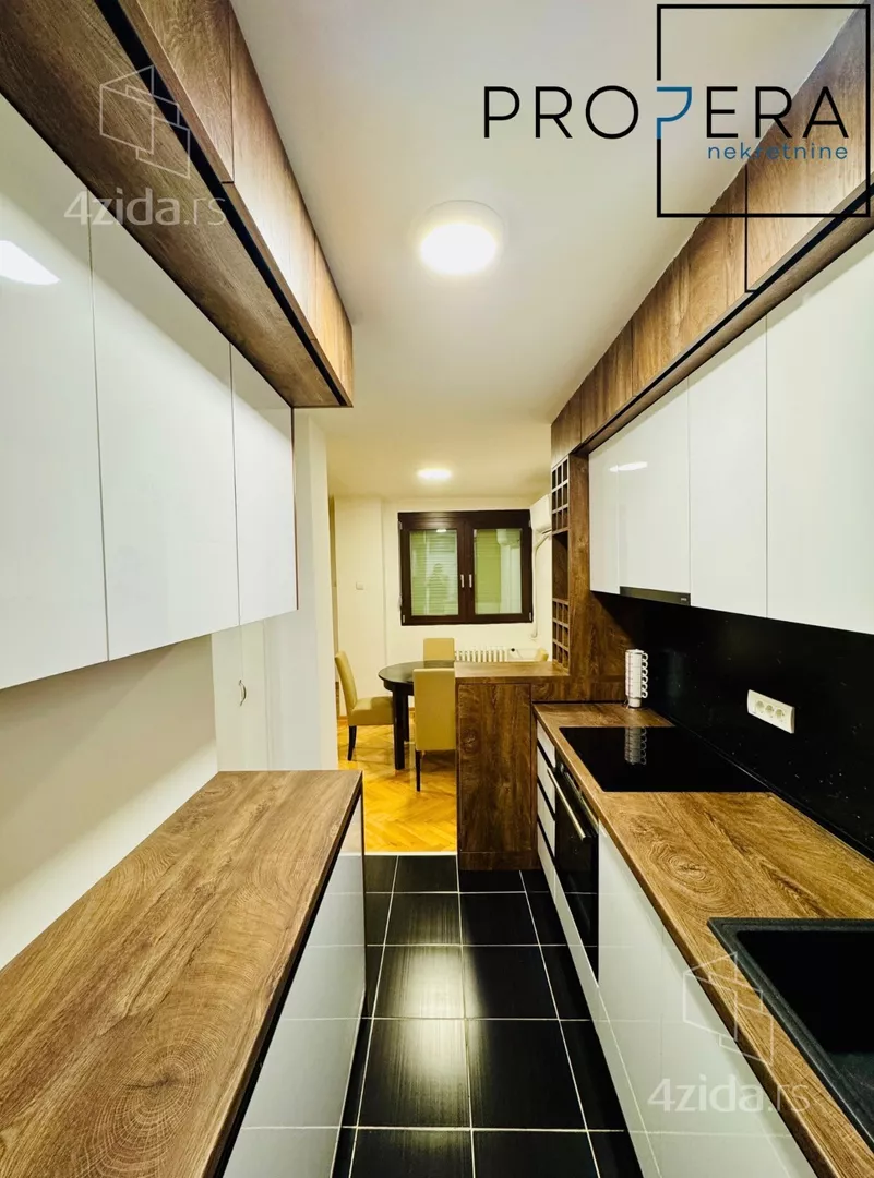 - Opremljenost: Namešteno - internet, TV, klima, ventilacija, veš mašina, kuhinjski elementi, sudo mašina, frižider, zamrzivač, mikrotalasna rerna, šporet, rerna, ležaj, plakar, ugradni plakar