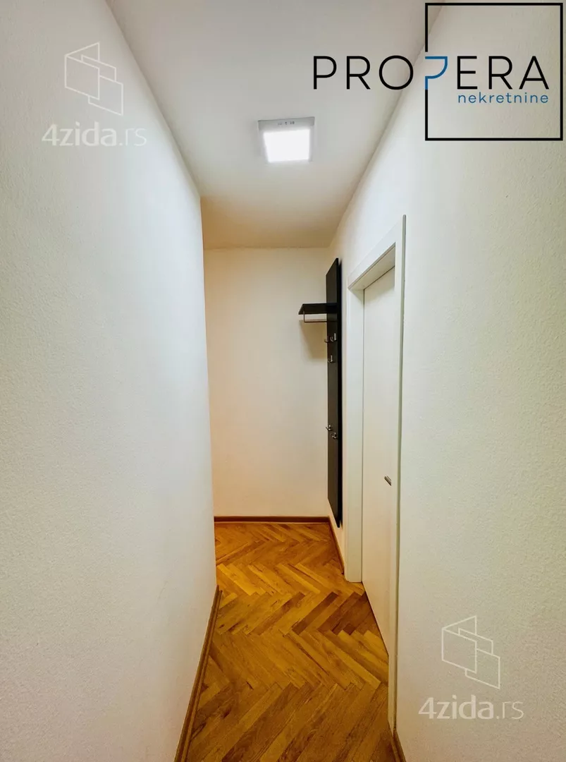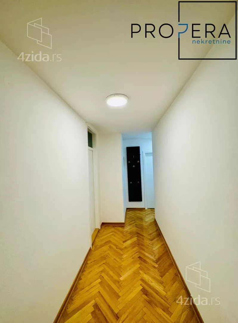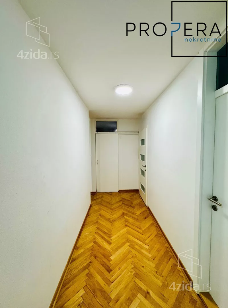 Izdaje se dvoiposoban stan, ukupne površine 70 m2. Stan se sastoji od ulaznog hodnika, dnevne sobe sa trpezarijom i kuhinjom, dve spavaće sobe, kupatila i dve terase.