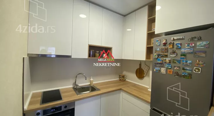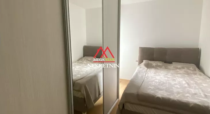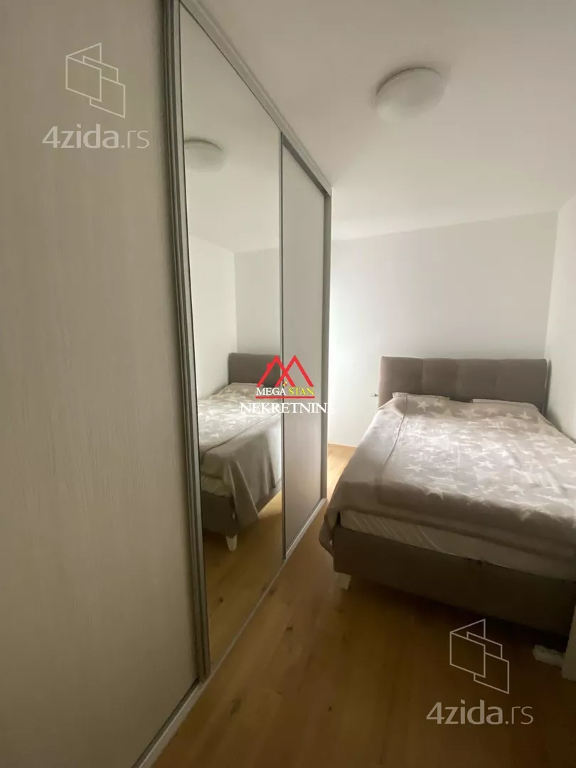 - Opremljenost: Namešteno - TV, klima, veš mašina, kuhinjski elementi, frižider, zamrzivač, šporet, rerna, ležaj, plakar, ugradni plakar