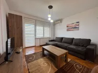 - Opremljenost: Namešteno - TV, klima, veš mašina, kuhinjski elementi, frižider, zamrzivač, šporet, rerna, ležaj, plakar