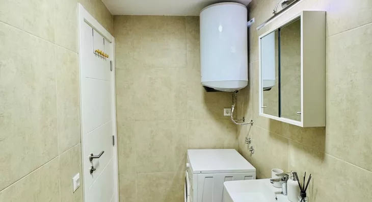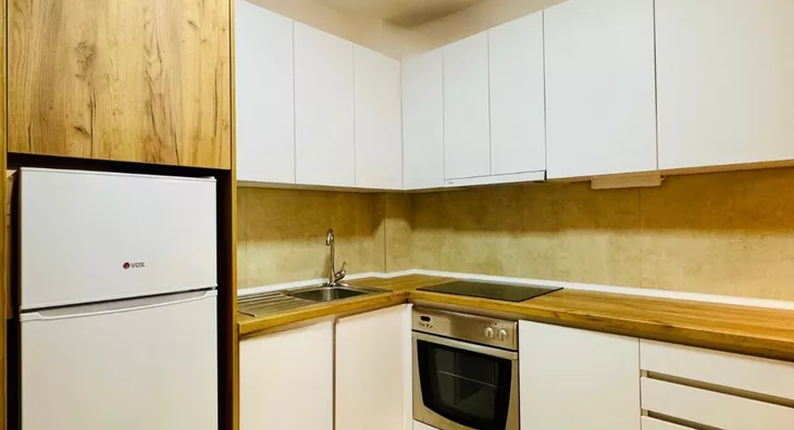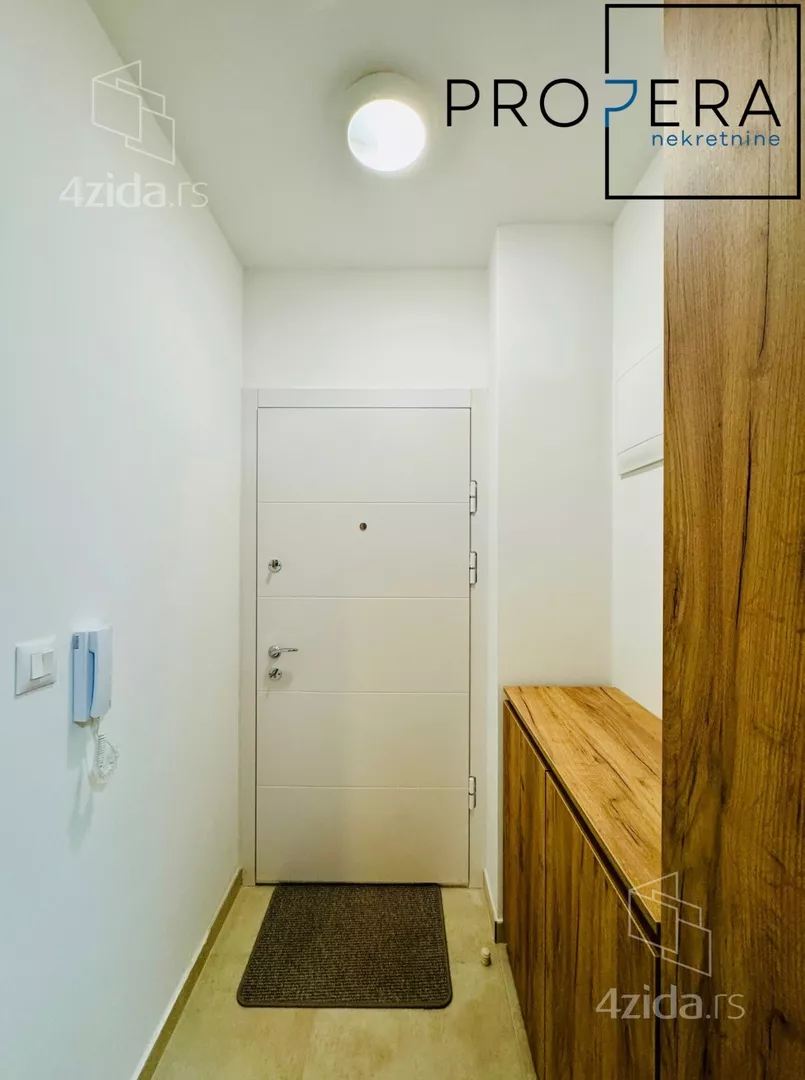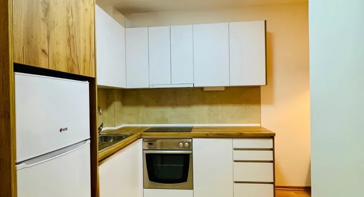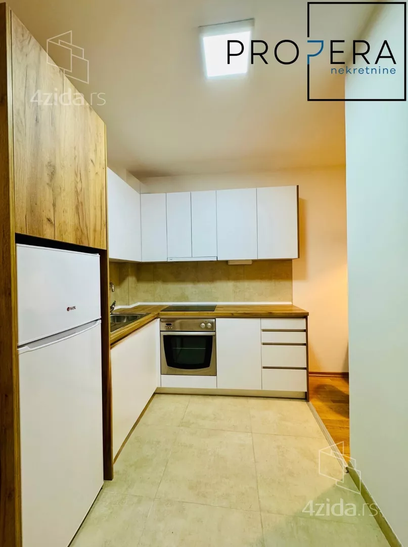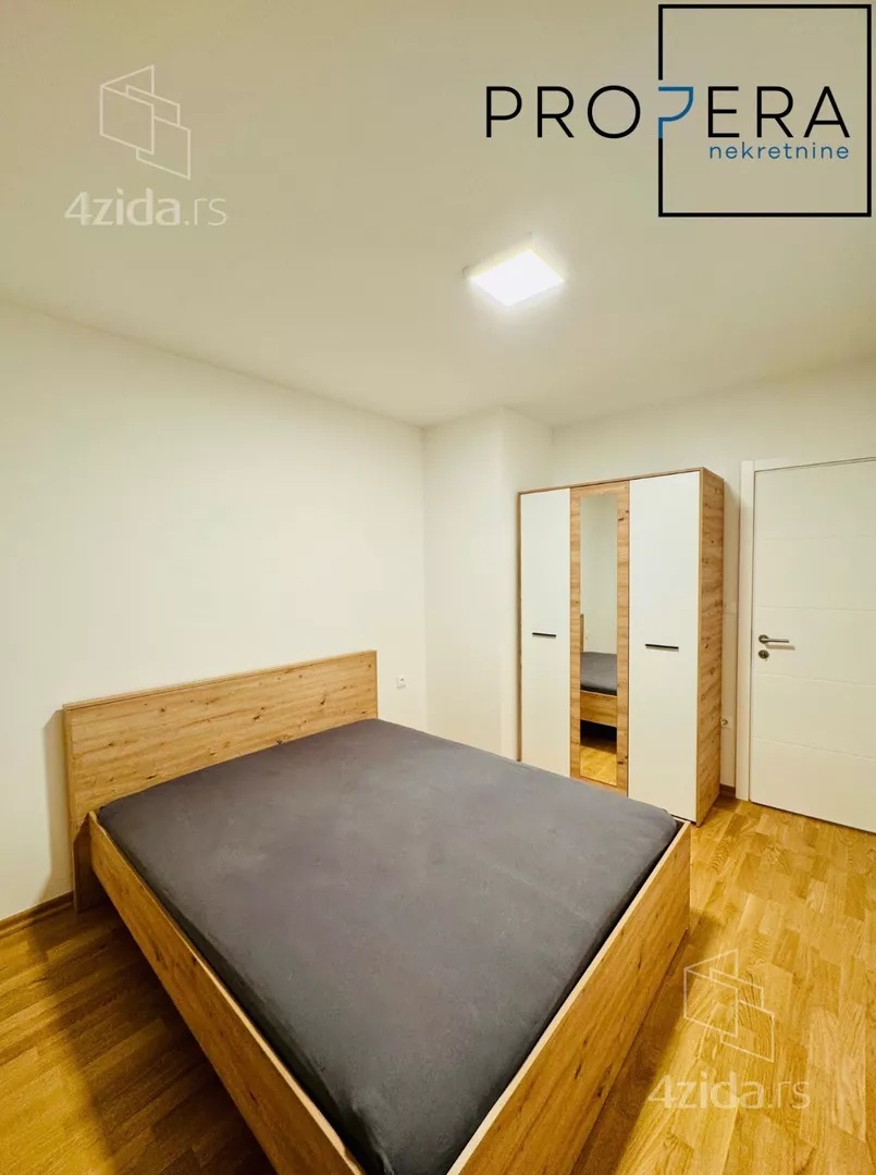 - Opremljenost: Namešteno - internet, TV, klima, ventilacija, veš mašina, kuhinjski elementi, frižider, zamrzivač, šporet, rerna, ležaj, plakar, ugradni plakar