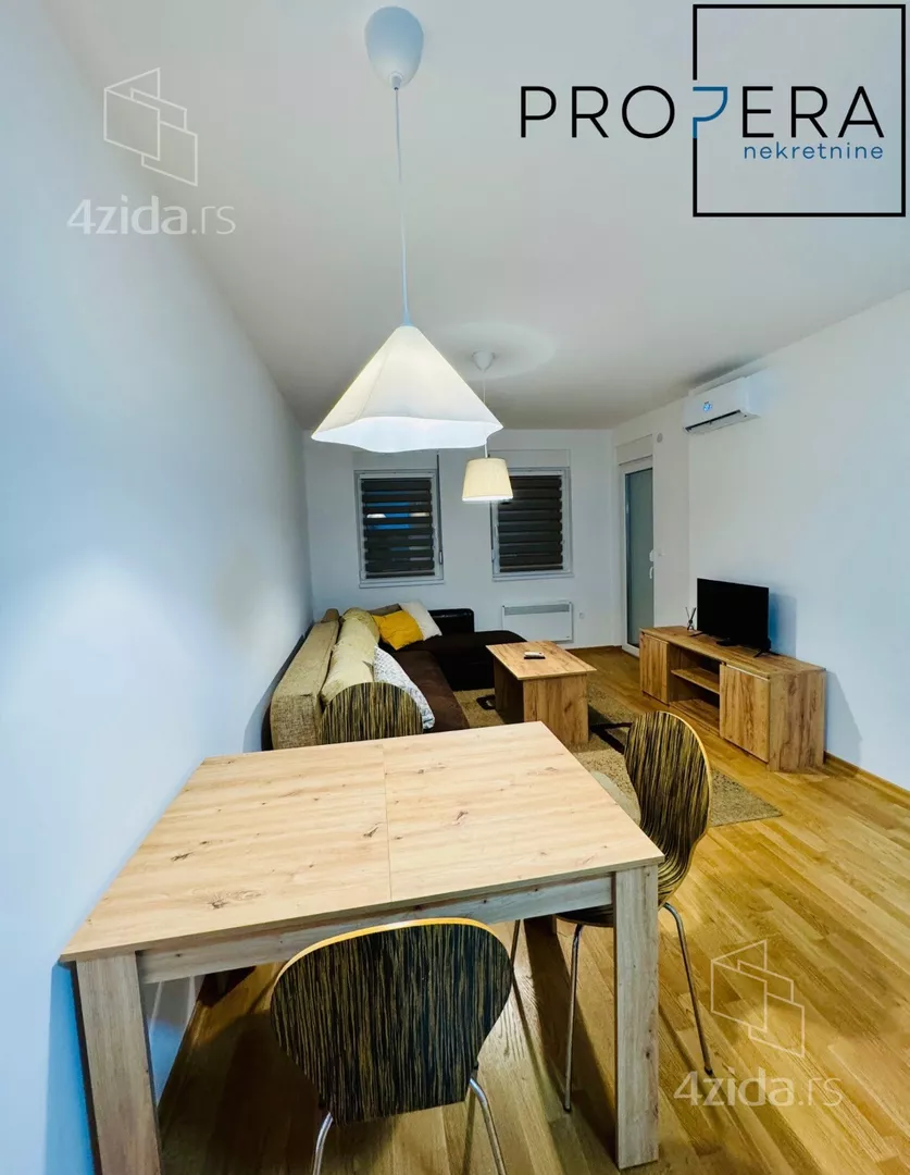 Stan je kompletno opremljen modernim nameštajem i najsavremenijim tehničkim uređajima. Grejanje u stanu je pomoću norveških radijatora, ovaj vid grejanja omogućava plaćanje po stvarnoj potrošnji, a stan poseduje i inverter klima uređaj.