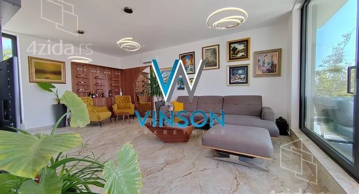 Sremska Kamenica. Izdvajamo iz ponude luksuznu nekretninu jedinstvenih karakteristika i visokog kvaliteta opreme i gradnje. Petosoban, kompletno namešten tripleks stan na obodu Fruške gore sa prelepim pogledom na Dunav i grad. Ovaj stambeni prostor, građen po principu smarthome sistema, poseduje tri redovne etaže, veliku terasu veličine 75m2 koja okružuje ceo stan i prednje dvorište od oko 45m2 koje može poslužiti kao parking za dva vozila. Prizemlje ovog stana predstavlja lep i svetao dnevni boravak, uvučena kuhinja sa prirodnom ventilacijom i kupatilo sa tuš kabinom. Prvi sprat je rezervisan za spavaću zonu i njega čine tri spavaće sobe i drugo kupatilo. Drugi sprat predstavlja prelepu galeriju sa izlazom na dve strane na veliku terasu sa pogledom na grad i Dunav, treće kupatilo. Podno grejanje na gas, alarm, video nadzor, elektro podizači roletni... Zakup na duži vremenski period. Useljiv odmah. (Vinson nekretnine, Novi Sad, Reg. br. posrednika: 1085)