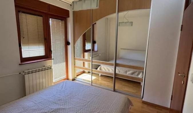 - Opremljenost: Namešteno - internet, interfon, TV, klima, veš mašina, sudo mašina, frižider, rerna, ležaj, plakar