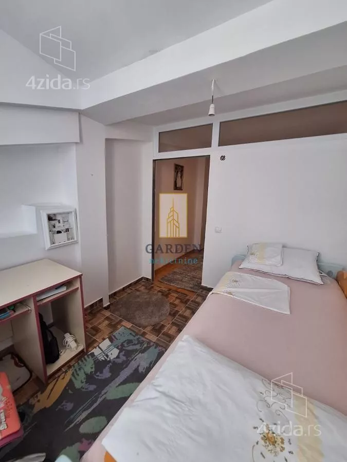 Dvoiposoban stan u Naselju Stepa Stepanović. Istočno je orijetnisan tako da u stanu nije vruće iako je u pitanju potkrovlje.