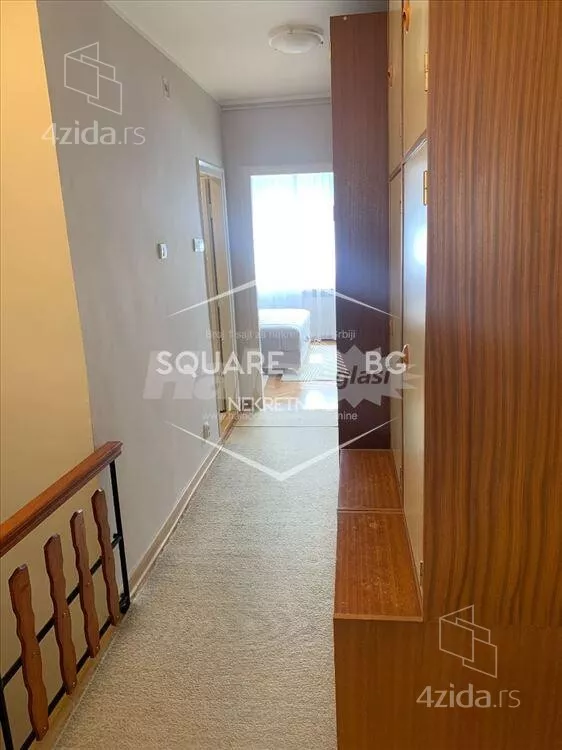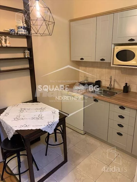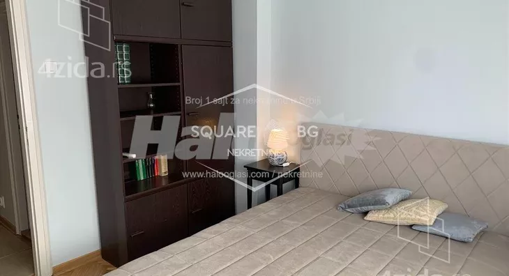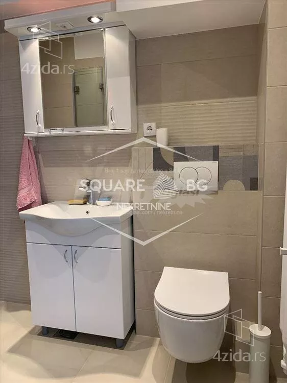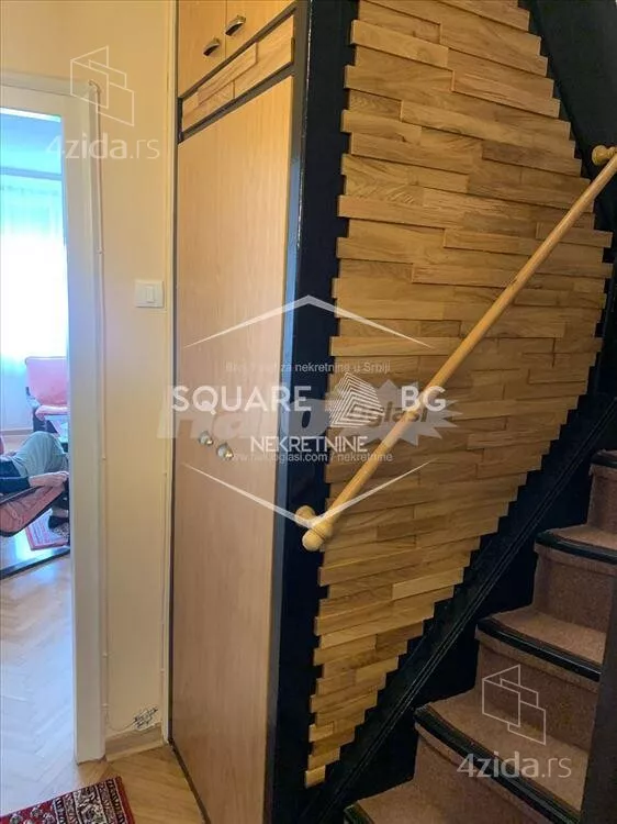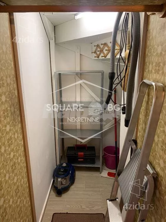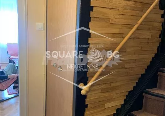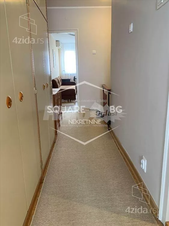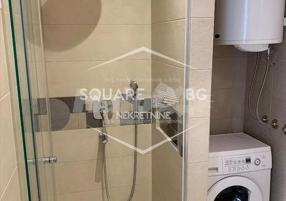Dupleks. Prvi nivo: predsoblje, toalet, kuhinja, hodnik, ostava i stepenište, dnevni boravak sa trpezarijom. Drugi nivo: hodnik sa plakarima, kupatilo, spavaća soba sa bračnim krevetom, kombinovana soba sa 2 ležaja i radnim stolom. PVC stolarija u čitavom stanu. Sve sobe sa klima uređajima. 2 televizora. Stan je kompletno namešten i opremljen belom tehnikom, malim kućnim aparatima, posuđem i jednim kompleteom posljine. Navedena cena za mesečne režije obuhvata infostan i održavanje zgrade. Dodatni trošak je struja (po potrošnji) i pakete TV+internet. U zgradi se nalazi samoposluga i teretana. Osnovna škola na 50m od zgrade. Agencijska provizija 50%