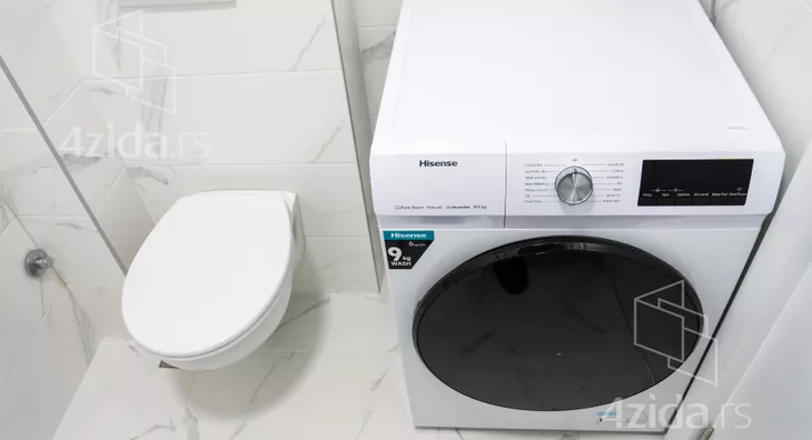 - Opremljenost: Namešteno - internet, TV, klima, veš mašina, kuhinjski elementi, sudo mašina, frižider, zamrzivač, šporet, rerna, ležaj, plakar, ugradni plakar