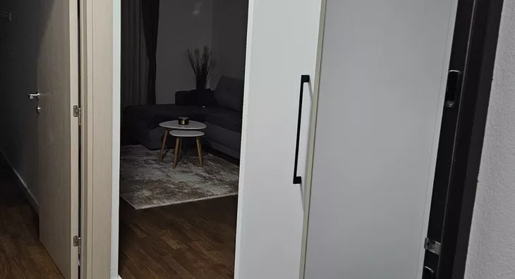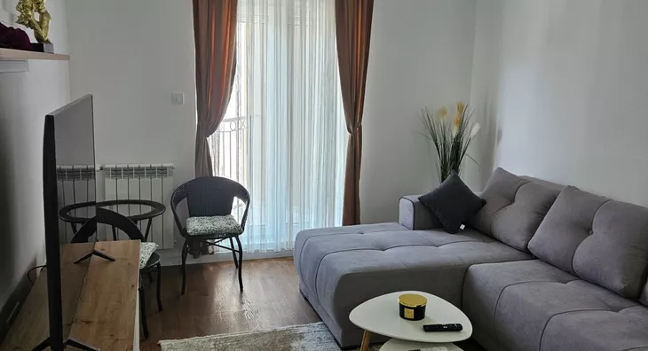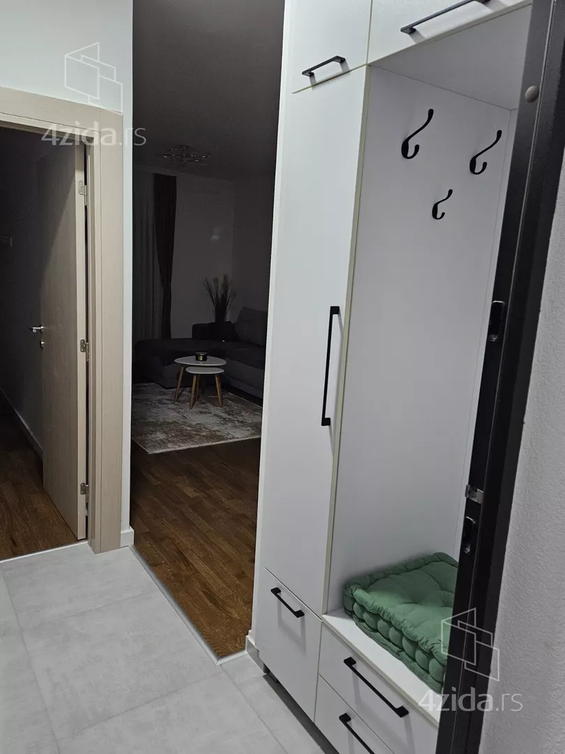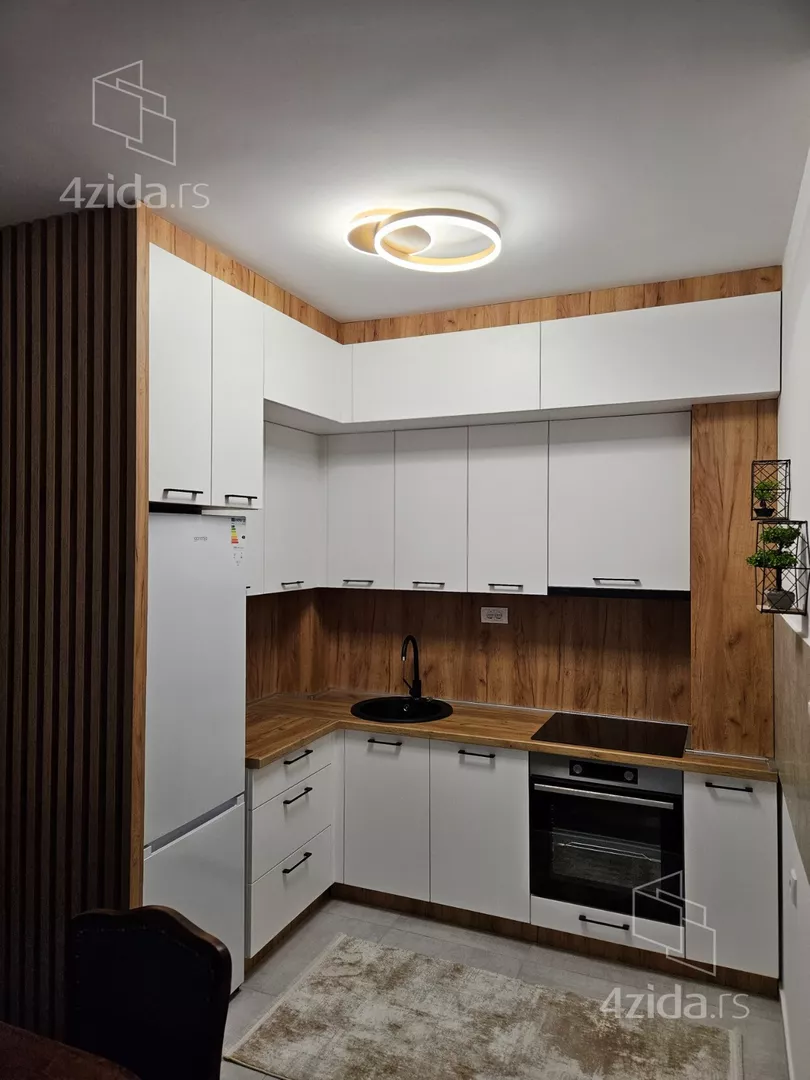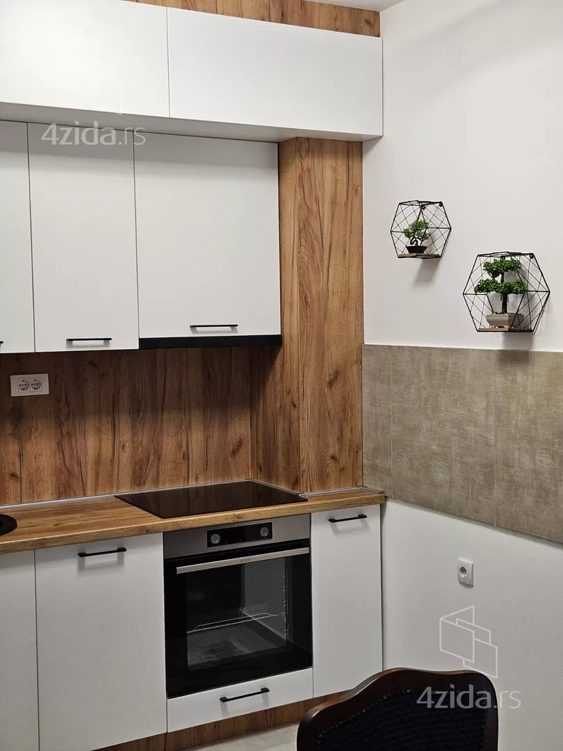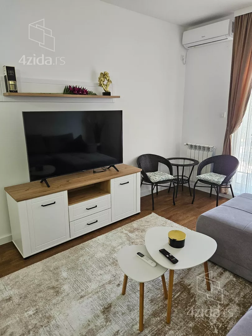 - Opremljenost: Namešteno - TV, klima, veš mašina, kuhinjski elementi, sudo mašina, frižider, zamrzivač, šporet, rerna, ležaj, plakar, ugradni plakar