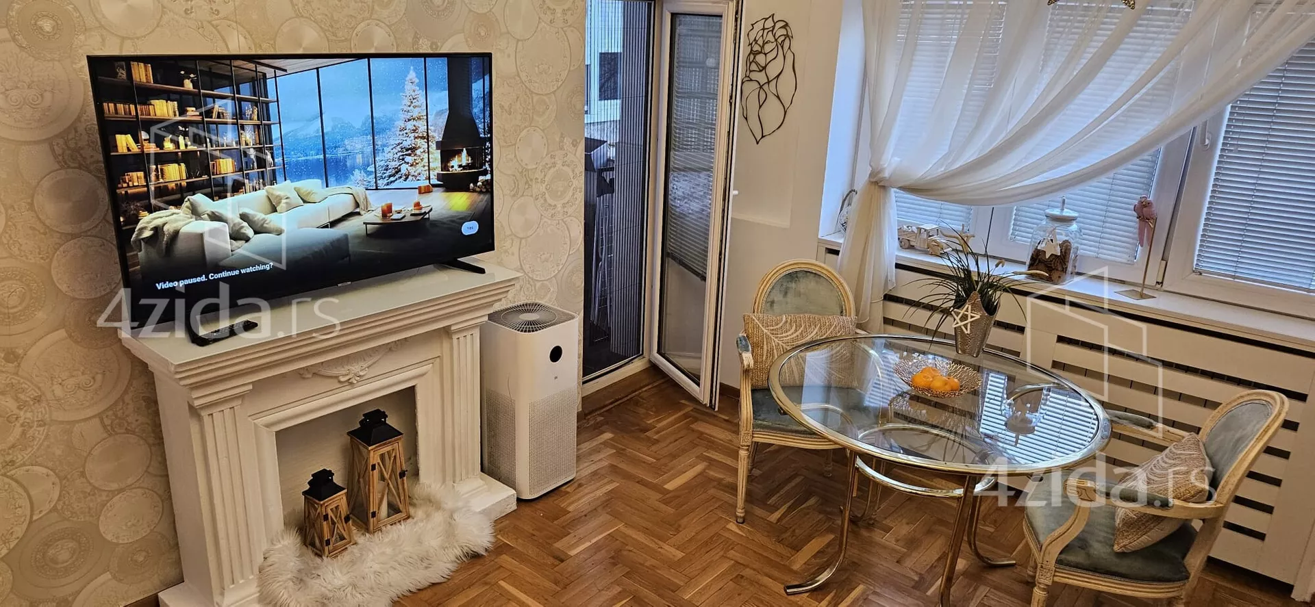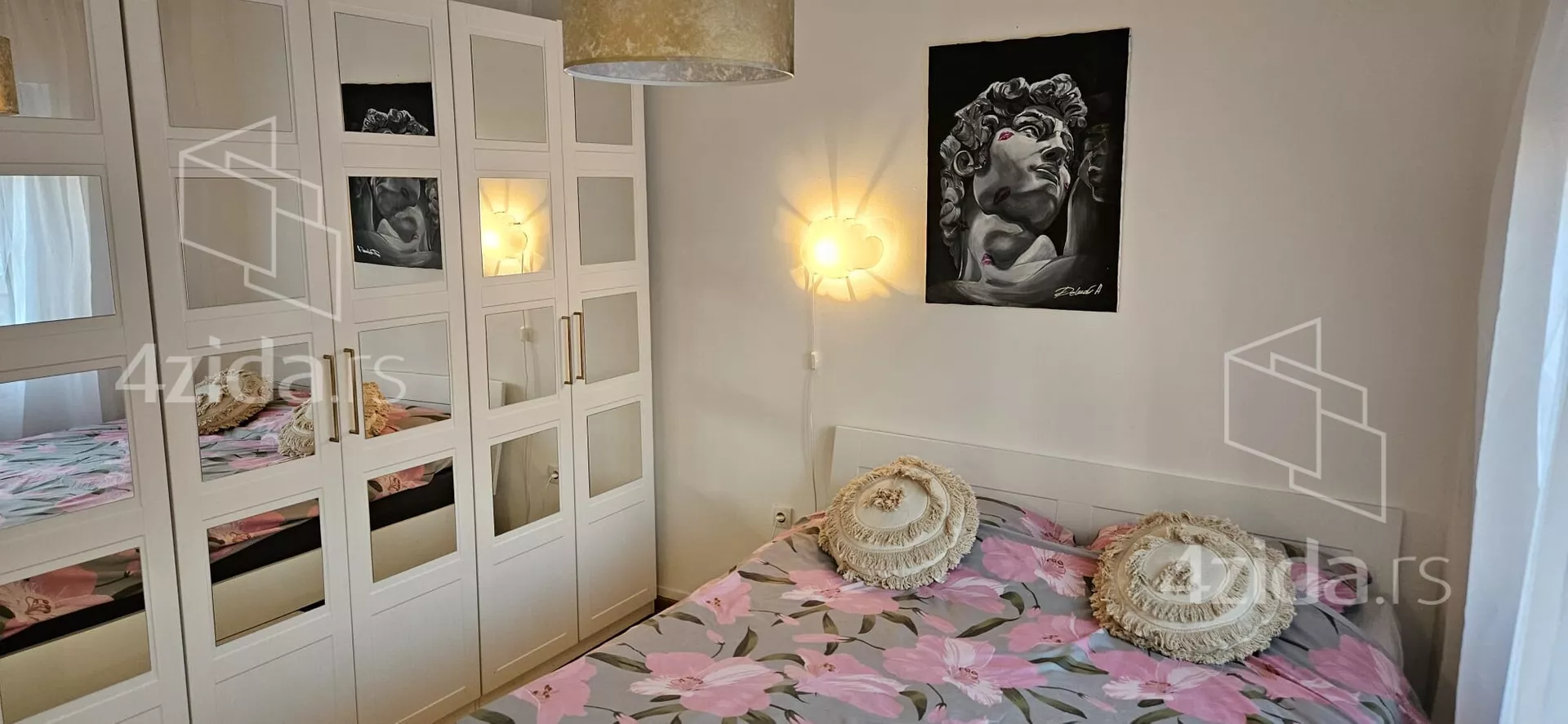 - Opremljenost: Namešteno - internet, TV, klima, veš mašina, kuhinjski elementi, sudo mašina, frižider, zamrzivač, šporet, rerna, ležaj, plakar, kancelarijski nameštaj