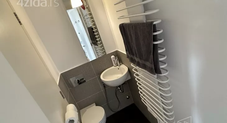Izuzetan stan, dizajnerski uređen, sa luksuznim nameštajem i specifičnim detaljima. Poseduje gostinjski toalet, veoma prostran dnevni boravak sa kuhinjom i trpezarijom iz koga se izlazi na veliku terasu. U drugom delu stana je spavaća soba i kupatilo. Postoji mogućnost iznajmljivanja garažnog mesta