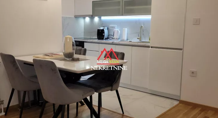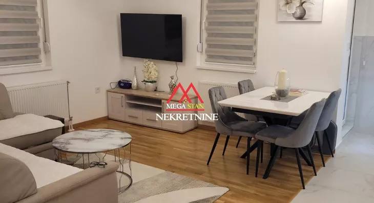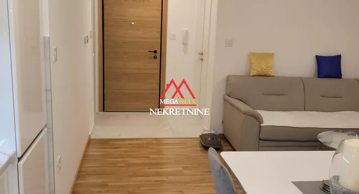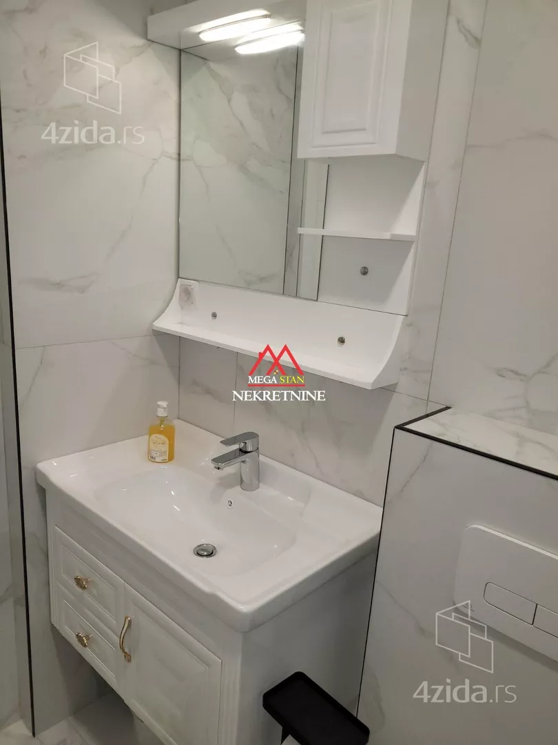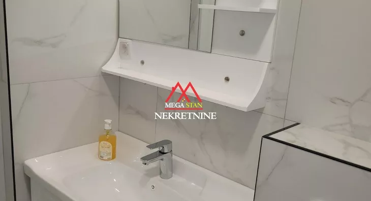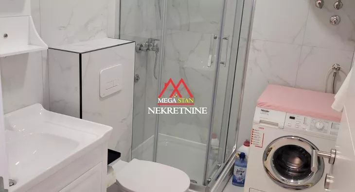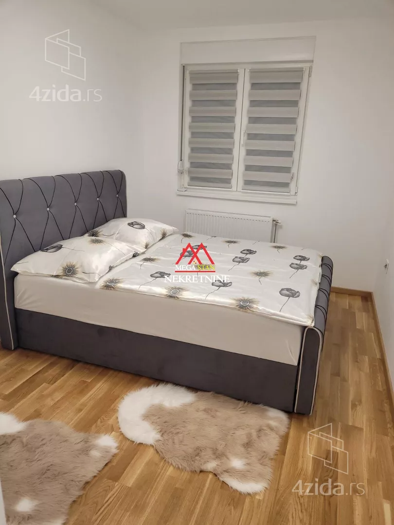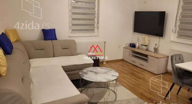 - Opremljenost: Namešteno - TV, klima, veš mašina, kuhinjski elementi, frižider, zamrzivač, šporet, rerna, ležaj, plakar, ugradni plakar, kancelarijski nameštaj