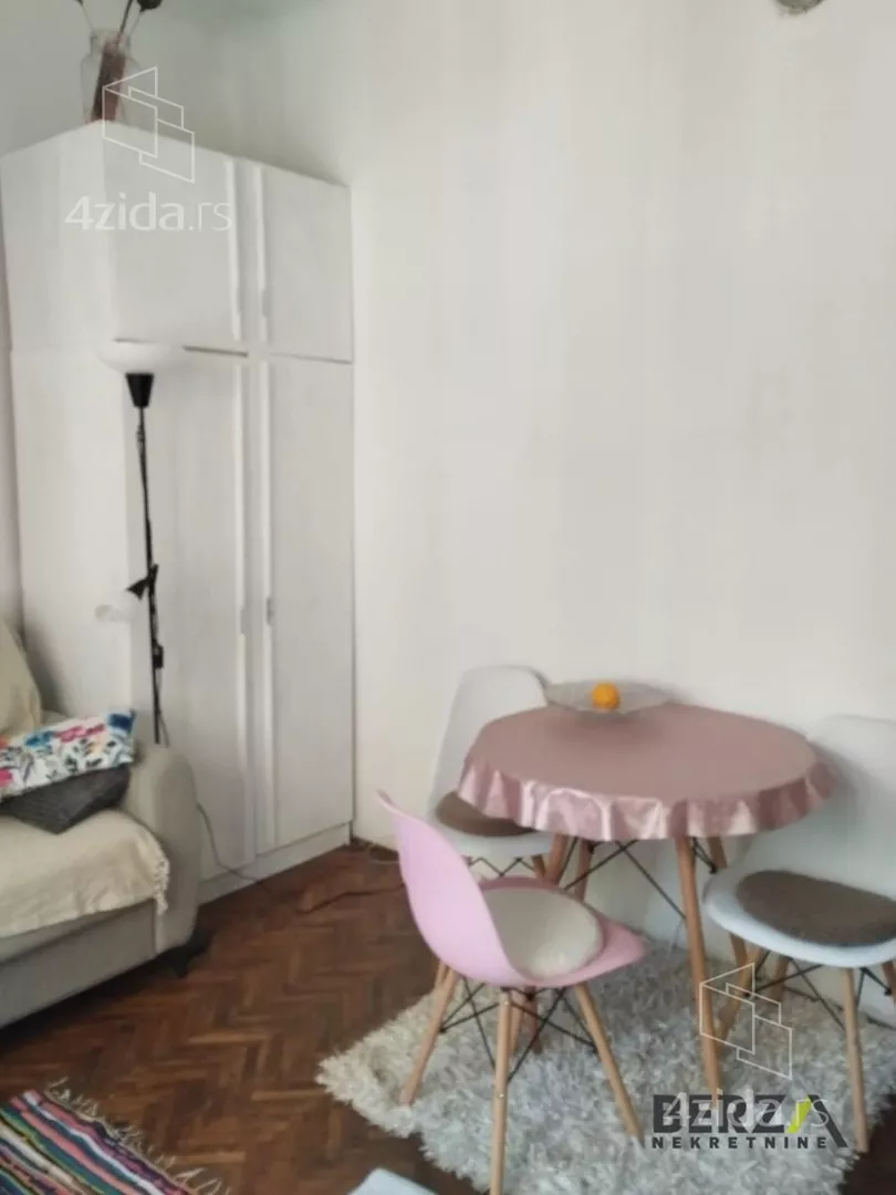 Izdaje se namešten jednosoban stan na prvom spratu zgrade u Futoškoj ulici. U stanu su dozvoljeni psi. Useljiv je odmah. Potreban depozit u visini jedne mesečne zakupnine.