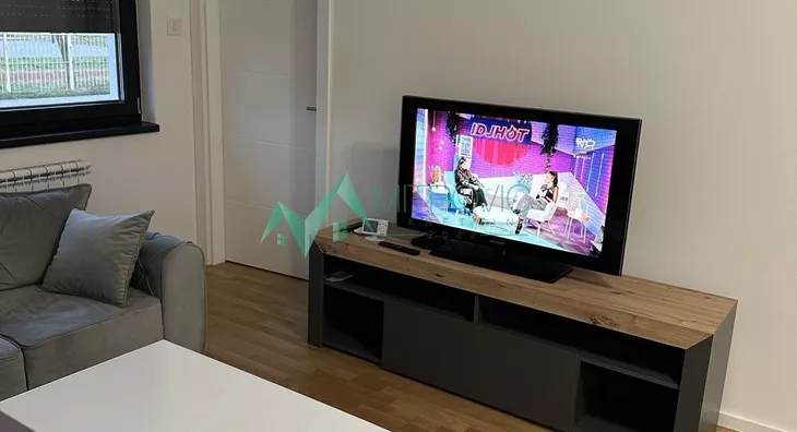 Poseduje tri velike spavaće sobe, dnevni boravak sa kuhinjom i trpezarijom, potpuno opremljeno kupatilo i terasa. Zgrada ima lift. Depozit 800eura.