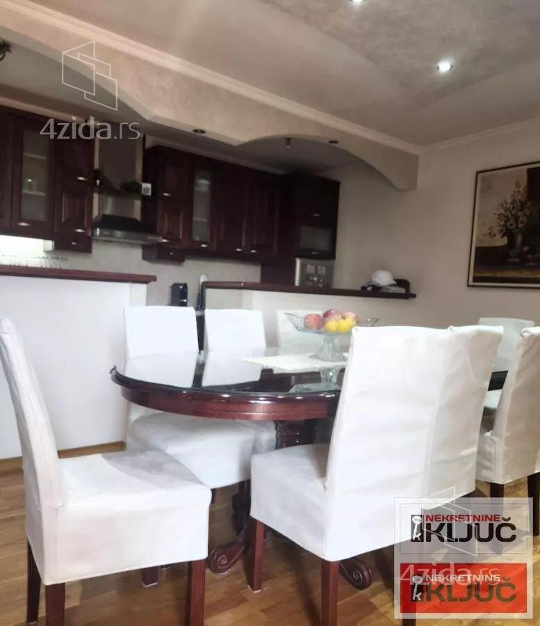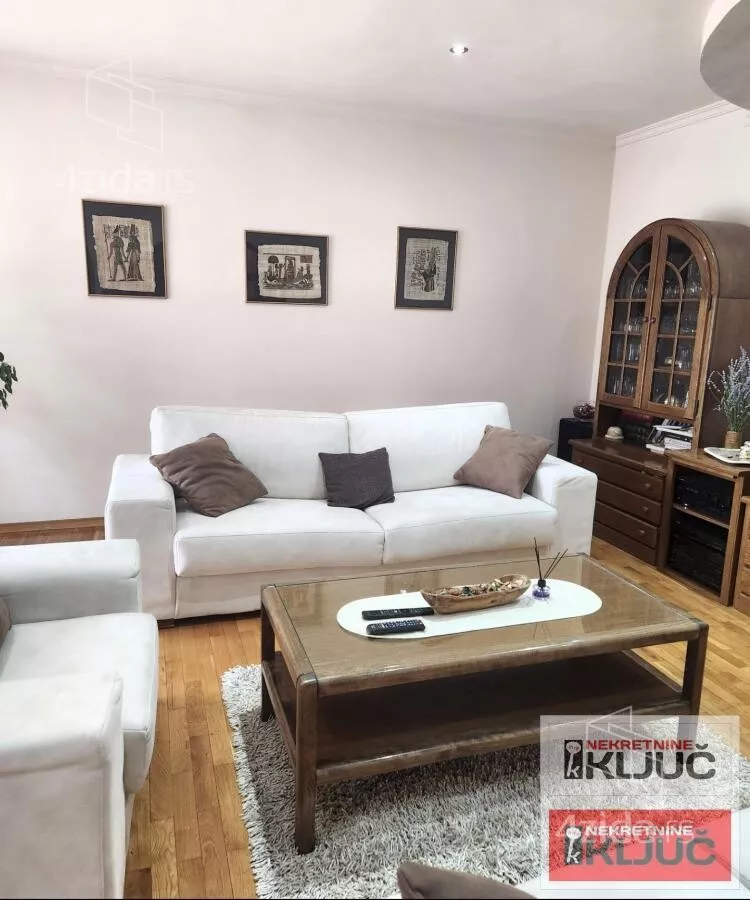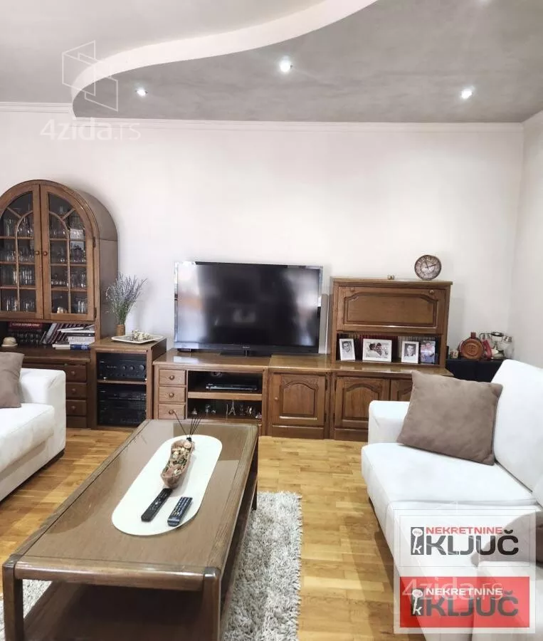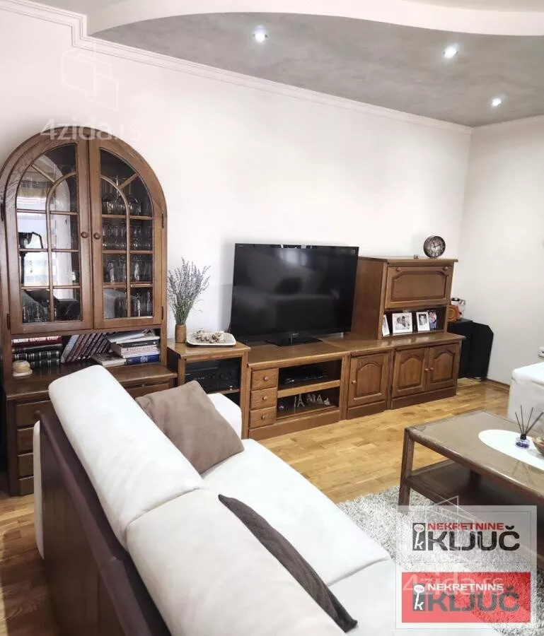 Stan se sastoji od:Prostrane dnevne sobe,odvojene trpezarije,kuhinje,3 spavaće sobe,hodnika,2 kupatila(jedno kupatilo je sa dzakuzijem a drugoo sa tuš kabinom) i terase.