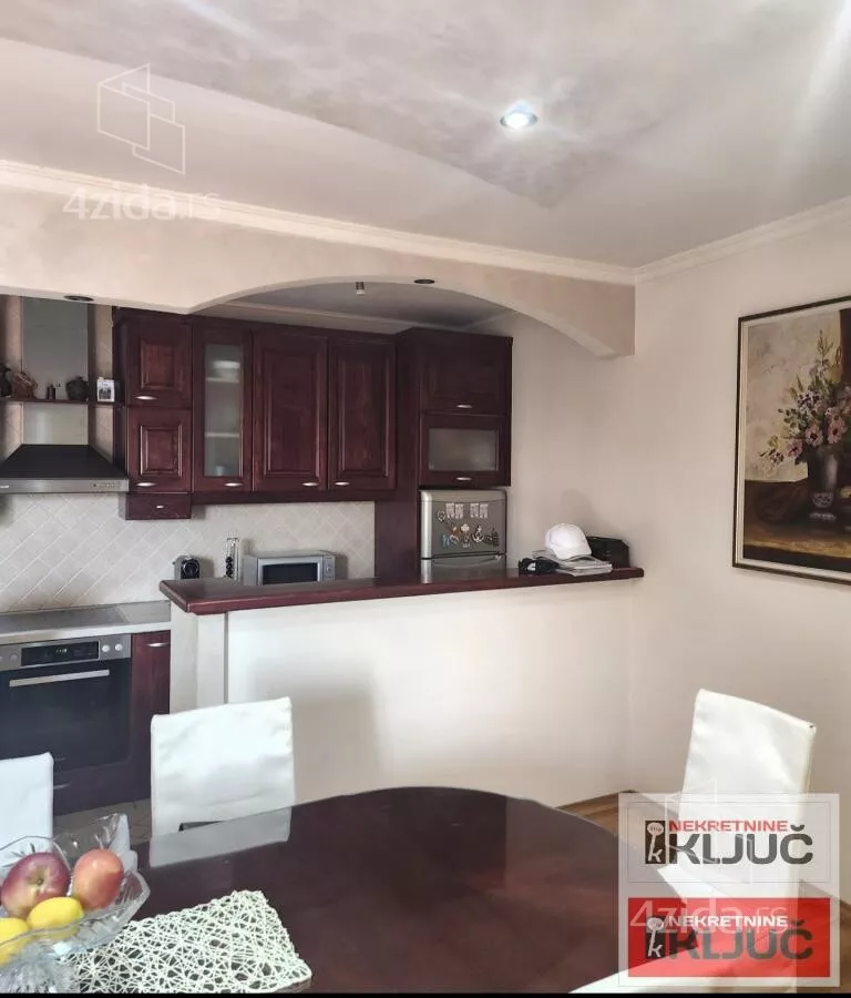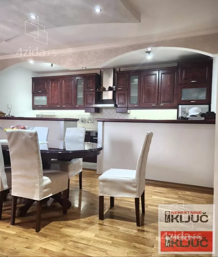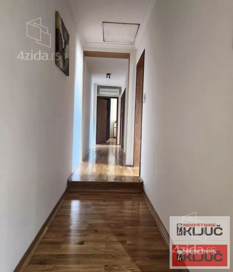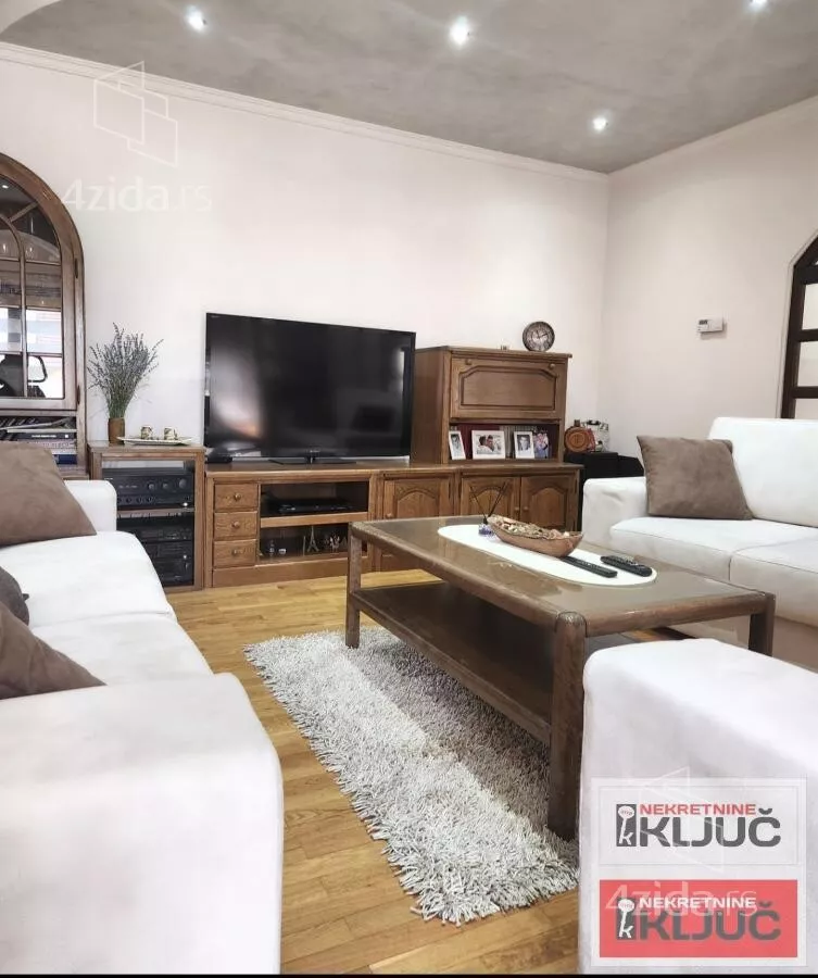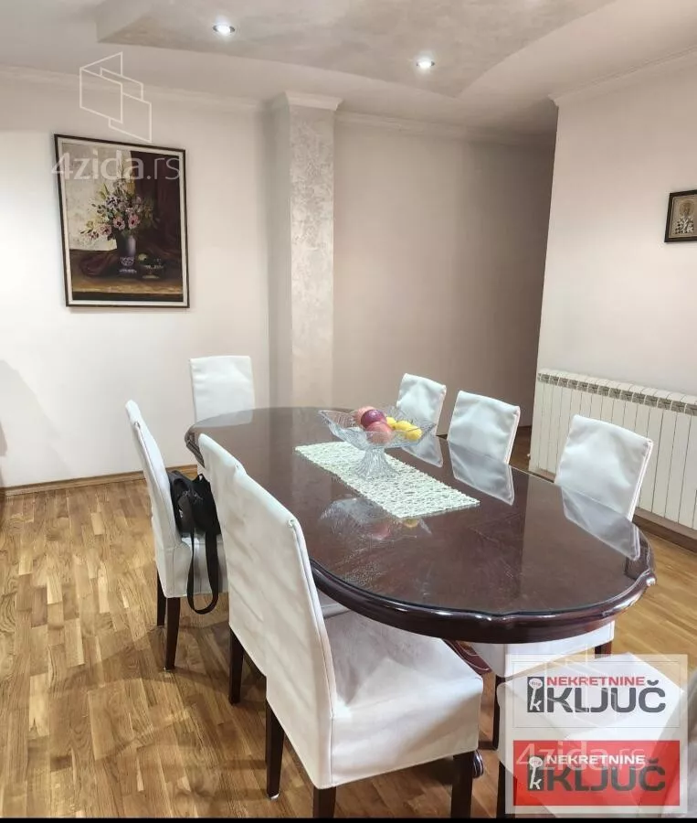 Stan se sastoji od:Prostrane dnevne sobe,odvojene trpezarije,kuhinje,3 spavaće sobe,hodnika,2 kupatila(jedno kupatilo je sa dzakuzijem a drugoo sa tuš kabinom) i terase.