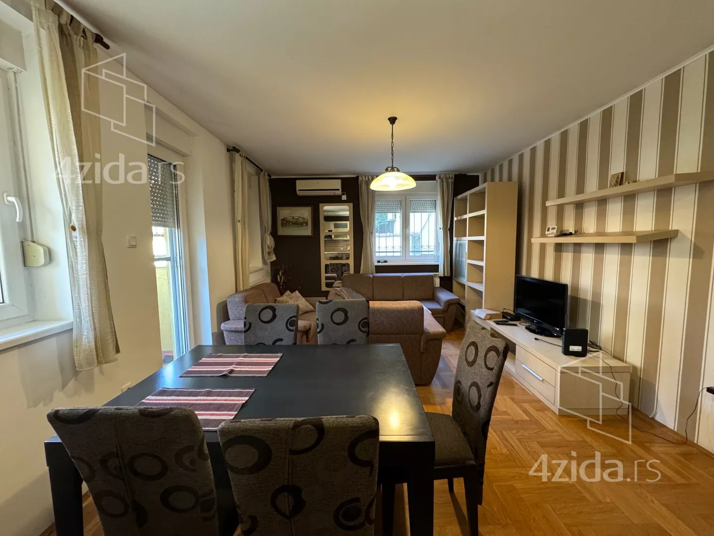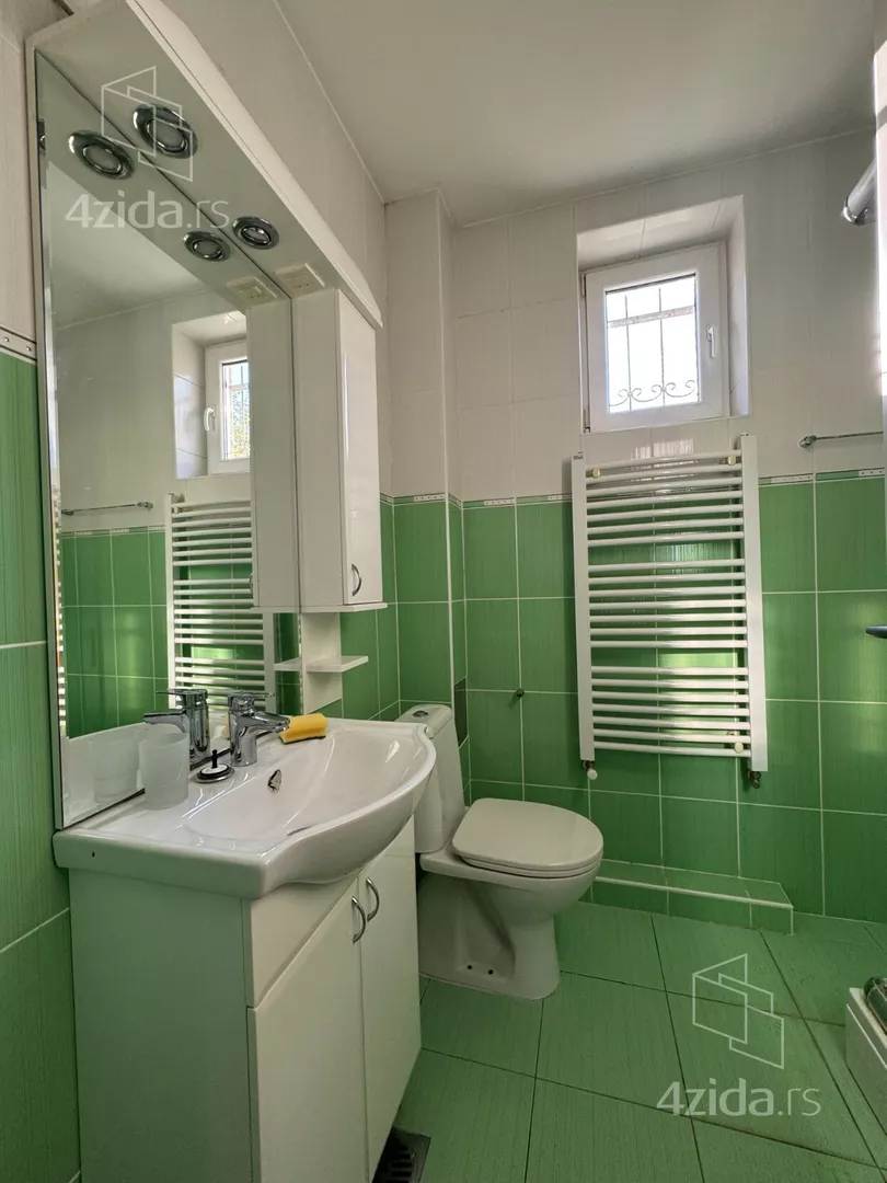 - Opremljenost: Namešteno - TV, klima, veš mašina, kuhinjski elementi, sudo mašina, frižider, zamrzivač, šporet, rerna, ležaj, plakar