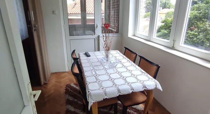 - Opremljenost: Namešteno - TV, klima, veš mašina, kuhinjski elementi, sudo mašina, frižider, šporet, rerna, ležaj, plakar