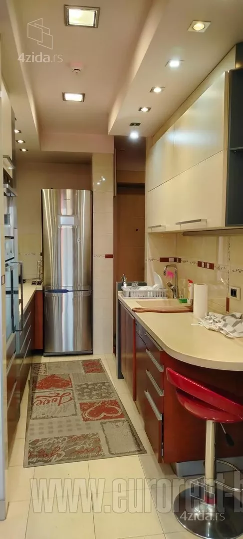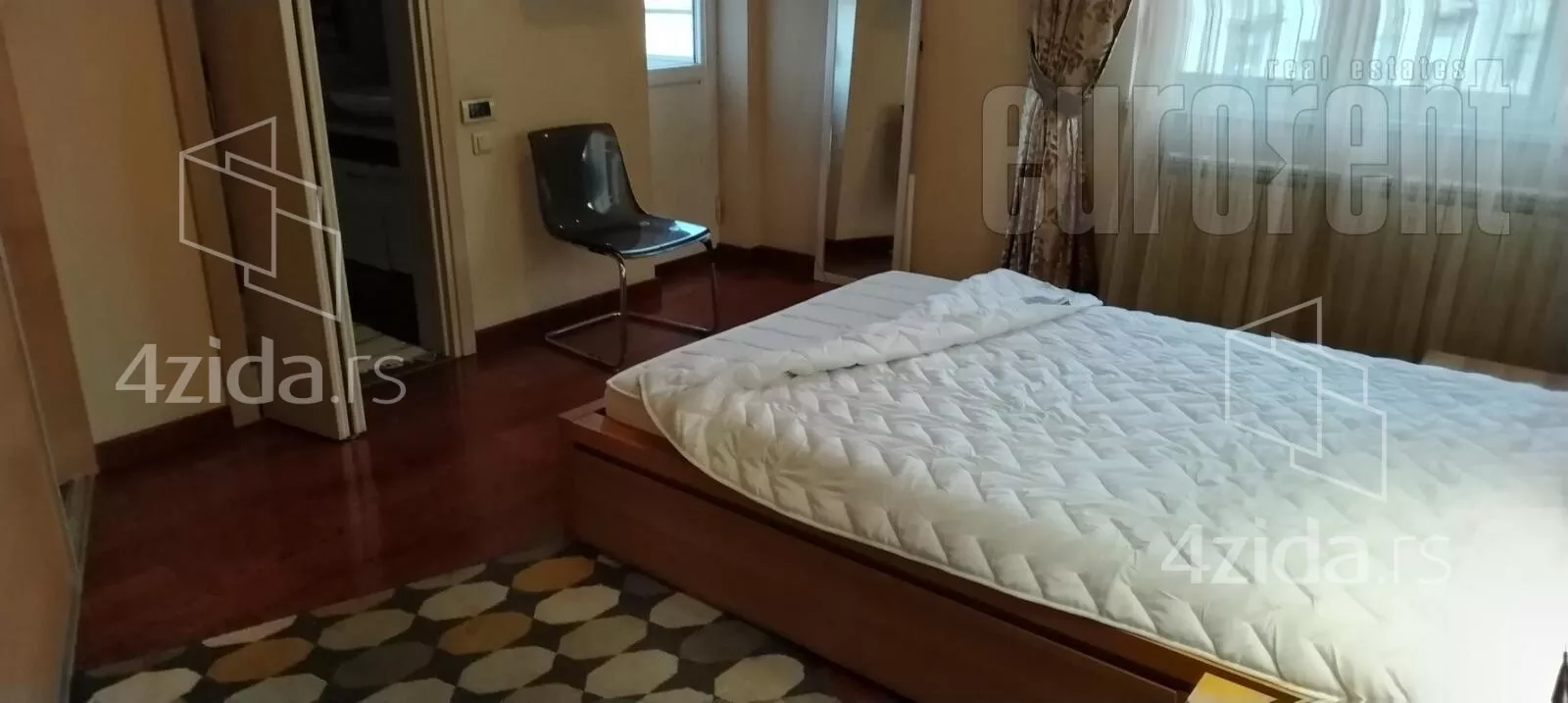 Zgrada starije gradnje, smeštena na uglu dve prometne ulice, u strogom centru grada. Preko puta Doma omladine i na par minuta od Trga Republike, predstavlja odličnu polaznu tačnu za kretanje ka različitim delovima grada, pešek, gradskim prevozom ili kolima. Stan je smešten na četvrtom spratu zgrade. Dvostrano je orijentisan i zahvaljujući ugaonoj poziciji zgrade, obiluje svetlošću. Moderno opremljen enterijer sa dosta detalja. Strukturu čini manja spavaća soba (ili radna), i vrlo komforna spavaća soba sa ugradnim plakarom celom dužinom zida. Veća spaaća soba ima sopstveno kupatilo sa tuš kabinom i izlaza na terasu sa pogledom na Trg Republike. Dnevni boravak je otvorenog tipa, a kuhinja modernog koncepta, opremljena svom potrebnom tehnikom. Iz kuhinje vodi izlaz na drugu terasu. U ulaznom hodniku je zaseban toalet i plakar. Stan je kompletno renoviran pre par godina i prati koncept modernog stanovanja. Nameštaj u kombinaciji modernog i klasičnog uz dosta detalja stvara udobnu atmosferu, koja uz centralnu poziciju prestavlja odličan izbor za život.