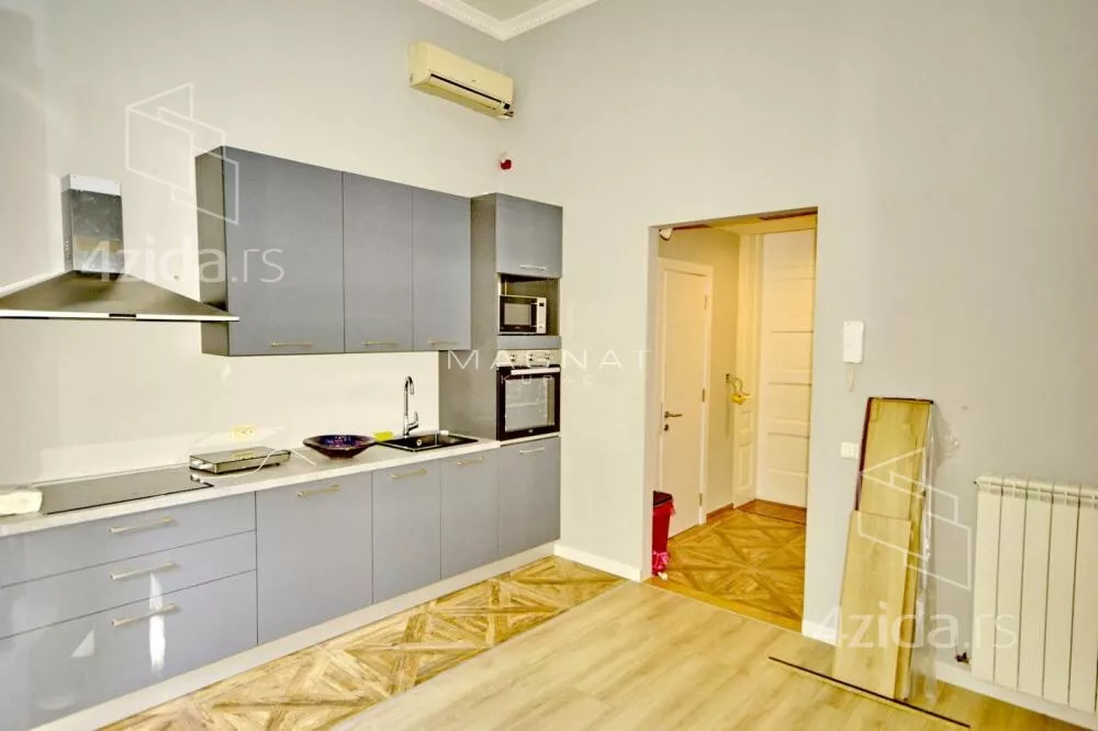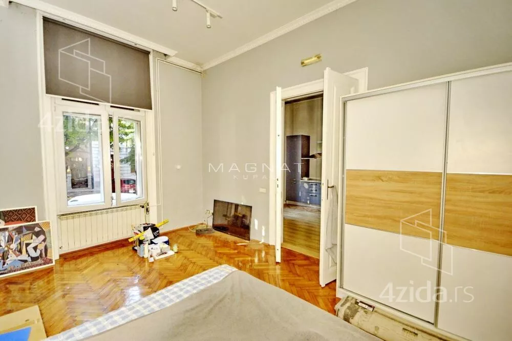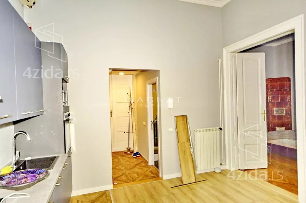 U ponudi imamo izuzetan jednoiposoban stan površine 44 kvadrata u najlepsem delu Francuske ulice, u blizini Narodnog Pozorišta. Stan se nalazi u divnoj , predratnoj zgradi sa prelepom , obnovljenom fasadom , ulaz je sa visokim svodom , sasvim se slaze sa spoljasnjim izgledom zgrade . Stan se nalazi u visokom prizemlju , vrlo je svetao , sa visinom plafona oko 3,30 m , orijentisan je ka ulici i sastoji se od ulaznog hodnika , dva mokra čvora, ima kuhinju sa trpezarijom I dnevnim boravkom i prostranu spavaću sobu. Grejanje je centralno , Stan se izdaje polunamešten. Bez kućnih ljubimaca. Garancija dva depozita , poželjno izdavanje na duži vremenski period. 1012 Oznaka na mapi pokazuje deo grada, ne i tačan položaj zgrade. agencijska provizija 2% 50%