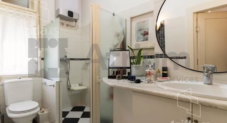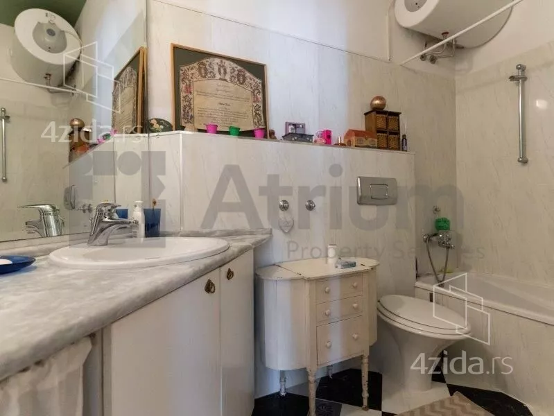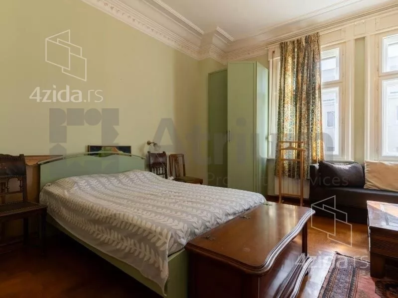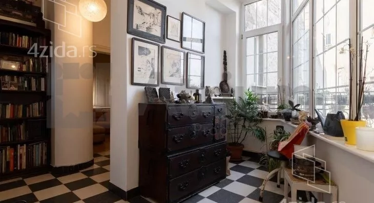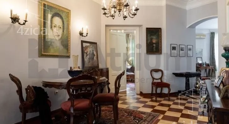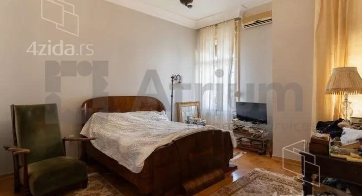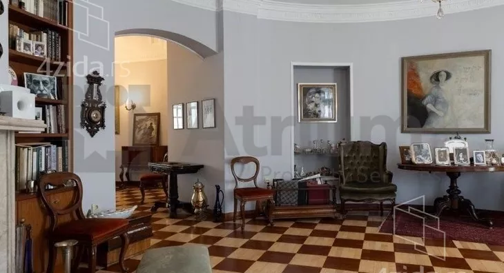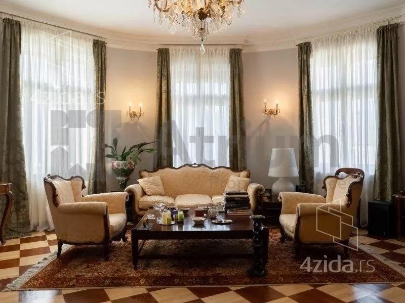 Raskošan, autentičan salonski stan lociran u centru grada, kod Trga republike. Ovaj jedinstven stan se nalazi u zgradi koja je pod zaštitom države. Sastoji se iz prostrane terase koja se nalazi na samom ulazu u stan, antrea, trpezarijskog dela, kuhinje, predivnog kružnog salona, prečnika 9m, koji se nalazi ispod same kupole zgrade, kao i tri spavaće sobe, jedne radne sobe, tri kupatila kao i jednog toaleta.