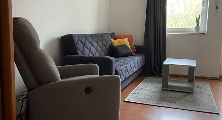 Izdaje se stan na duži vremenski period na dobroj lokaciji, sa lepim pogledom, besplatnim parkingom unutar i ispred zgrade, niskim režijama. Potreba za grejanjem je mala, jer je stan "ušuškan". Sveže je renovirano, novi ležaj, frižider sa zamrzivačem, veš mašina. Po dogovoru dodajemo televizor, mikrotalasnu/rernu i rešo. Depozit je u visine jednomesečne kirije.