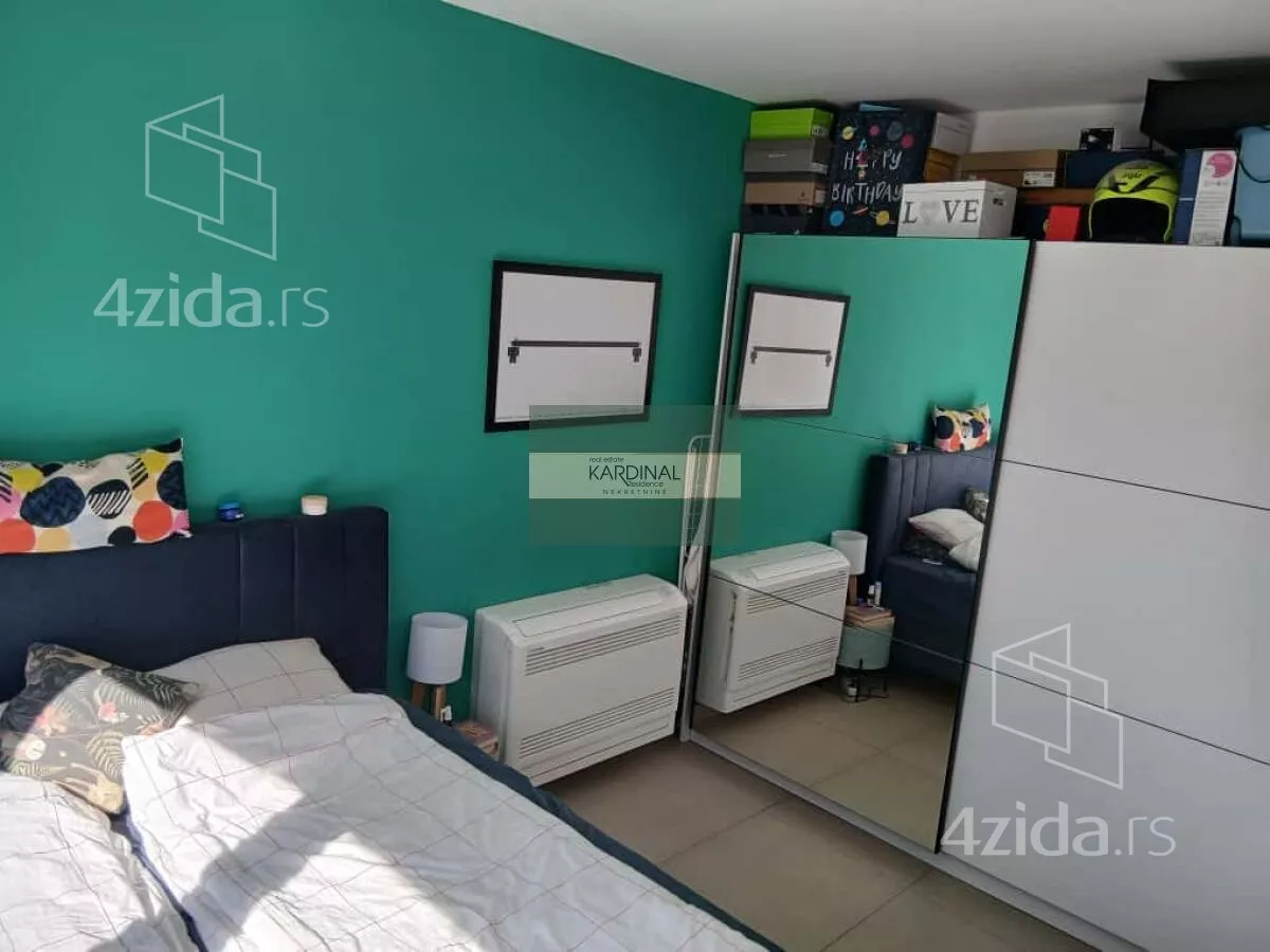 - Opremljenost: Namešteno - internet, interfon, TV, klima, veš mašina, sudo mašina, frižider, rerna, ležaj, plakar