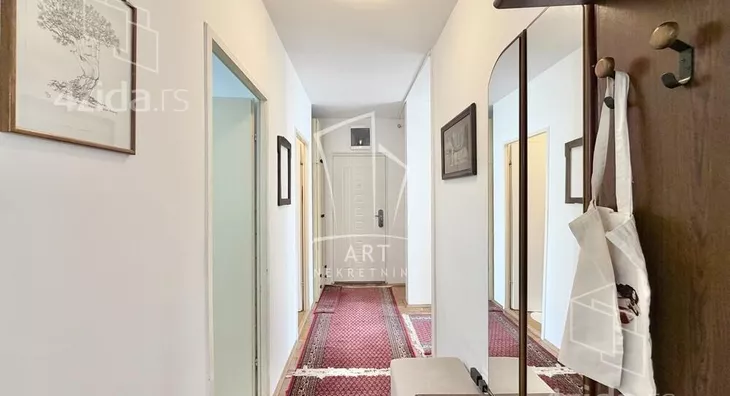 U mirnom kraju, ulica Vidikovački Venac, izdaje se odličan, potpuno namešten porodični stan od 82m2. Stan je veoma uredan, nalazi se na sunčanoj strani i sastoji se od dnevnog boravka, trepezarije, kuhinje sa zatvorenom lođom, ostave - garderobera, kupatila, toaleta, tri spavaće sobe (u jednoj je veliki bračni krevet, a u ostale dve singl kreveti) i predivne terase. Mikro lokacija je odlična i u blizini se nalaze škole, vrtići, super marketi, pijaca i mnoge linije gradskog prevoza. Zgrada poseduje dva lifta, prilaz za invalide, a ispred je veliki parking. Stan je za svaku preporuku. Agencijska provizija 50% vrednosti jedne mesečne zakupnine. Agent: Kačar Nebojša, br. licence 5962 “Art nekretnine“ d.o.o. Beograd. Reg. br. 339 011... (prikaži broj telefona) .