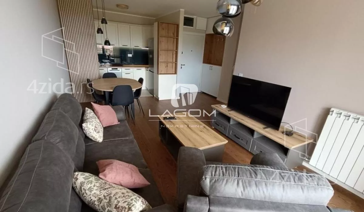 Izdaje se nov, neuseljavan, luksuzno opremljen dvosoban stan u kompleksu Sannyville. Stan je izuzetno komforan, kompletno opremljen novim vrhunskim nameštajem i novom, nekorišćenom ugradnom tehnikom tako da zadovolji najviše kriterijume stanovanja. Sastoji se od prostranog dnevnog boravka sa trpezarijom i kuhinjom, spavaće sobe, kupatila i terase. Grejanje je centralno sa kalorimetrima (obračun po potrošnji). Garažno mesto od 12m2 koje se nalazi ispod objekta na -1 nivou je uključeno u cenu zakupnine. Odmah useljiv. Depozit u visini jedne mesečne zakupnine. Agencijska naknada se plaća u iznosu od 50% dogovorene jednomesečne zakupnine za period zakupa u trajanju do 12 meseci. Agencijska provizija 50%. ID oglasa: 42850.