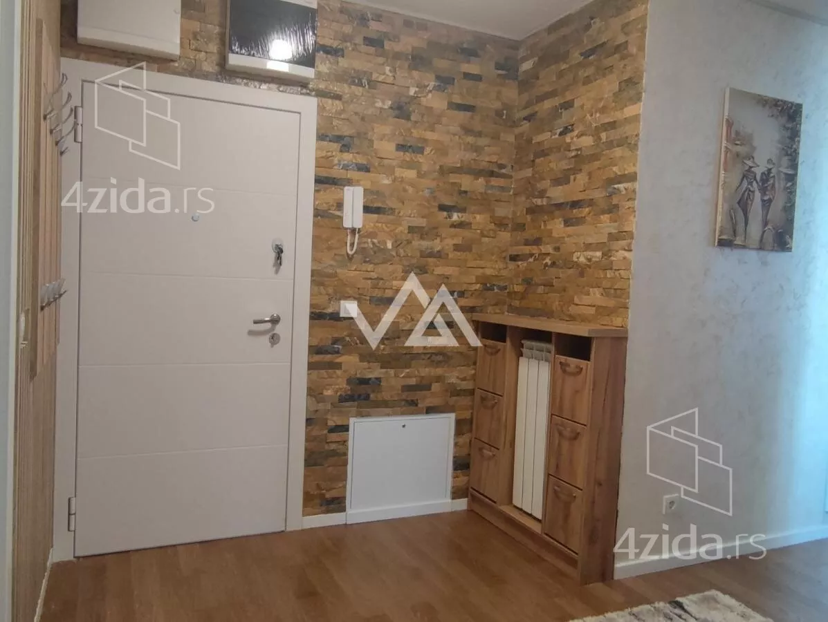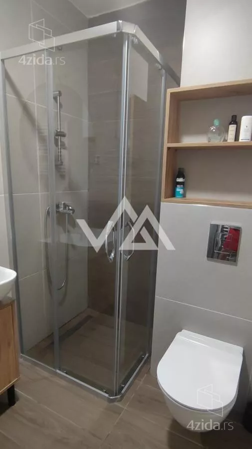Stan je namešten i sadrži: kupatilo, ostavu, terasu, TV, klimu, ventilaciju, veš mašinu, kuhinjske elemente, sudomašinu, frižider, zamrzivač, šporet, rernu, ležaj, plakar i ugradni plakar. Orijentacija stana je ka severu, sa pogledom na ulicu.