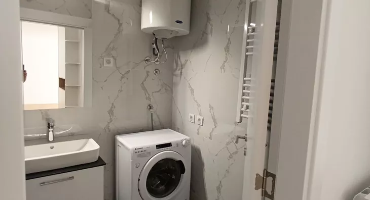 - Opremljenost: Polunamešteno - internet, veš mašina, kuhinjski elementi, sudo mašina, frižider, zamrzivač, šporet, rerna, ugradni plakar