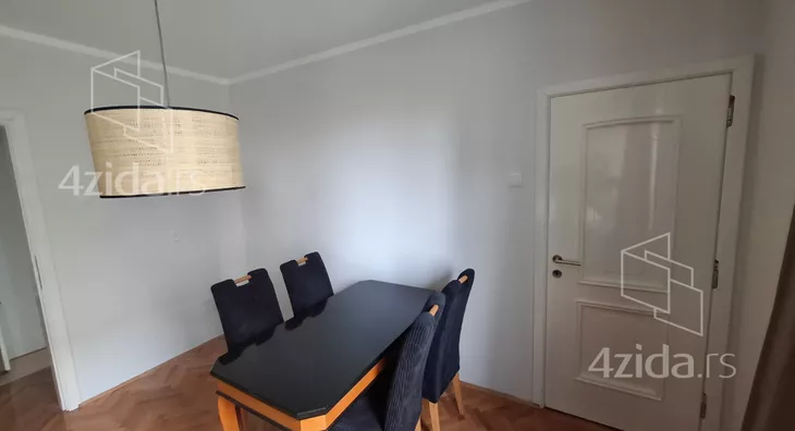 - Opremljenost: Namešteno - internet, klima, veš mašina, kuhinjski elementi, frižider, šporet, rerna, ležaj, plakar, ugradni plakar