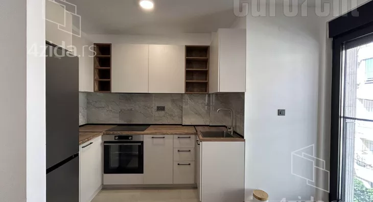 Odlična novogradnja na Voždovcu u mirnoj ulici nadomak Banjičke šume. Zgrada sa malim brojem stanova. Ovaj stan je dvoiposoban po strukturi i smešten je na drugom spratu. Raspolaže sa dve spavaće sobe, kupatilom i toaletom. Dnevni deo je open concept sa izlazom na balkon. Biće opremljen novim nemaštajem.