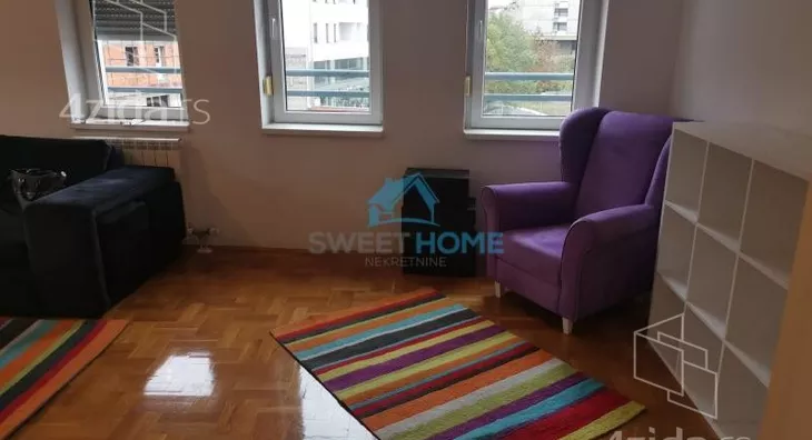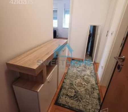 - Opremljenost: Namešteno - internet, interfon, TV, klima, veš mašina, sudo mašina, frižider, rerna, ležaj, plakar