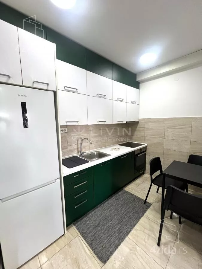 Izuzetan stan u novogradnji, kompletno opremljen novim nameštajem, u primerno održavanoj zgradi (sa dva lifta).