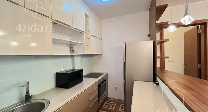 Sa 82 kvadratna metra dizajniranog prostora, ispunjenog prirodnom svetlošću koja pojačava otvoren i prozračan ambijent. Svaka soba ima dovoljno prostora za garderobu i uživa u prirodnom svetlu, stvarajući umirujuću atmosferu. Glavno kupatilo koje se nalazi izmedju 2 sobe sadrži prelepu kadu koja koja moze i da se koristi kao imitacija đakuzija, drugo koje se nalazi na ulazu u stan umesto kade ima tuš kabinu.Zgrada se održava na visokom nivou, uz profesionalno čišćenje zajedničkih prostora jednom nedeljno.Uz stan nudi se i parking mesto, se plaća posebno i košta €150. Stan je dostupan za useljenje od 1. oktobra.