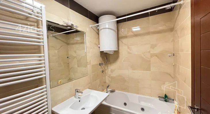 Главная ванная комната, расположенная между двумя спальнями, оснащена красивой ванной, которая также может использоваться как имитация джакузи. Вторая ванная, расположенная у входа в квартиру, оборудована душевой кабиной вместо ванны. Здание обслуживается на высоком уровне, с профессиональной уборкой общих помещений раз в неделю. За дополнительную плату €150 предоставляется парковочное место. Квартира доступна для заселения с 1 октября.