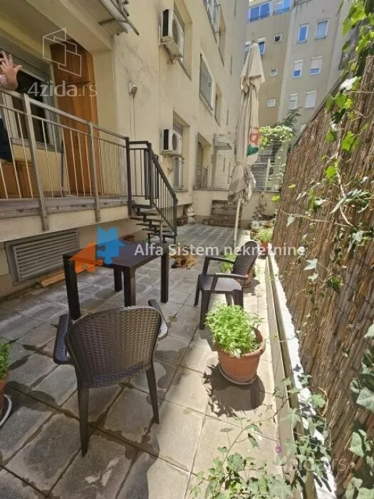 Površine je 48m2, u šta spada - hodnik, dnevna soba, kuhinja, kupatilo, i spavaća soba. Stan poseduje i veliku terasu + baštu u dvorištu zgrade kojoj samo ovaj stan ima pristup.