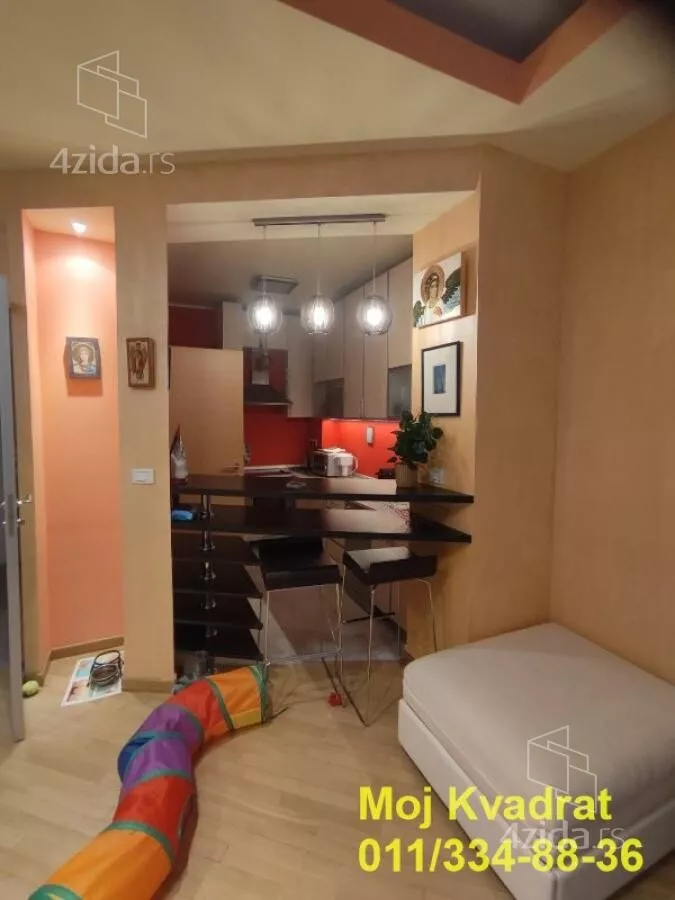 Sastoji se od veoma prostrane dnevne sobe koja je šankom povezana sa kuhinjom, a iz dnevne sobe ulazi se u spavaću sobu. Iz ulaznog hodnika pristupa se kupatilu, a sa bočne strane ulazi se u tehničku sobu gde je mašina za pranje veša.