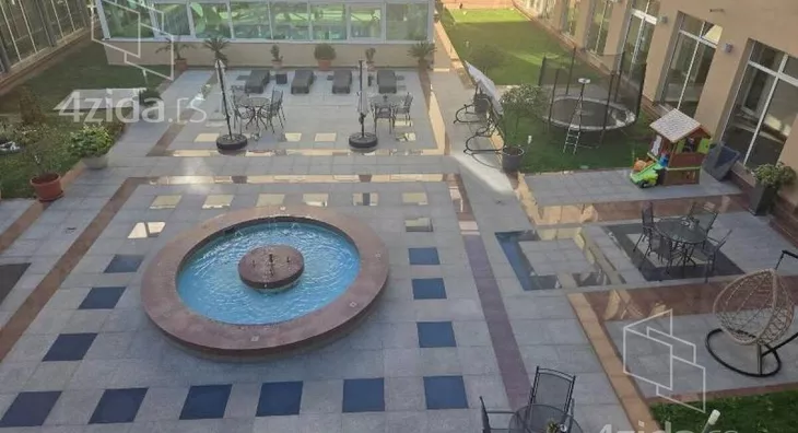 Zgrada je unikatne gradnje, veoma masivnih zidova, visokih plafona sa malim brojem stanova u okviru jednog ulaza. Centralna zona ove niskogradnje poseduje svoje ozelenjeno dvorište sa fontanom. U okviru kompleksa organizovano je svakodnevno održavanje, zgrada ima svoje obezbeđenje, kao i zaseban blok za sport i rekreaciju.