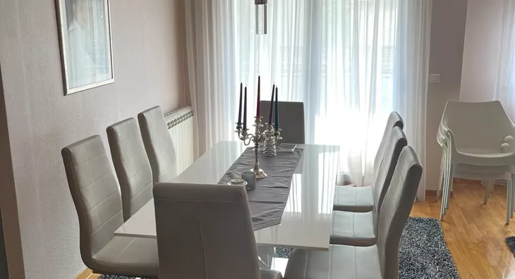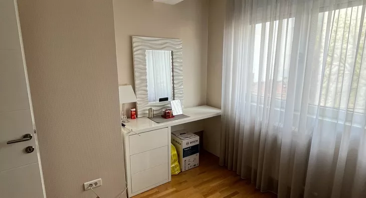 - Opremljenost: Namešteno - internet, TV, klima, veš mašina, kuhinjski elementi, sudo mašina, frižider, šporet, ležaj, plakar, ugradni plakar