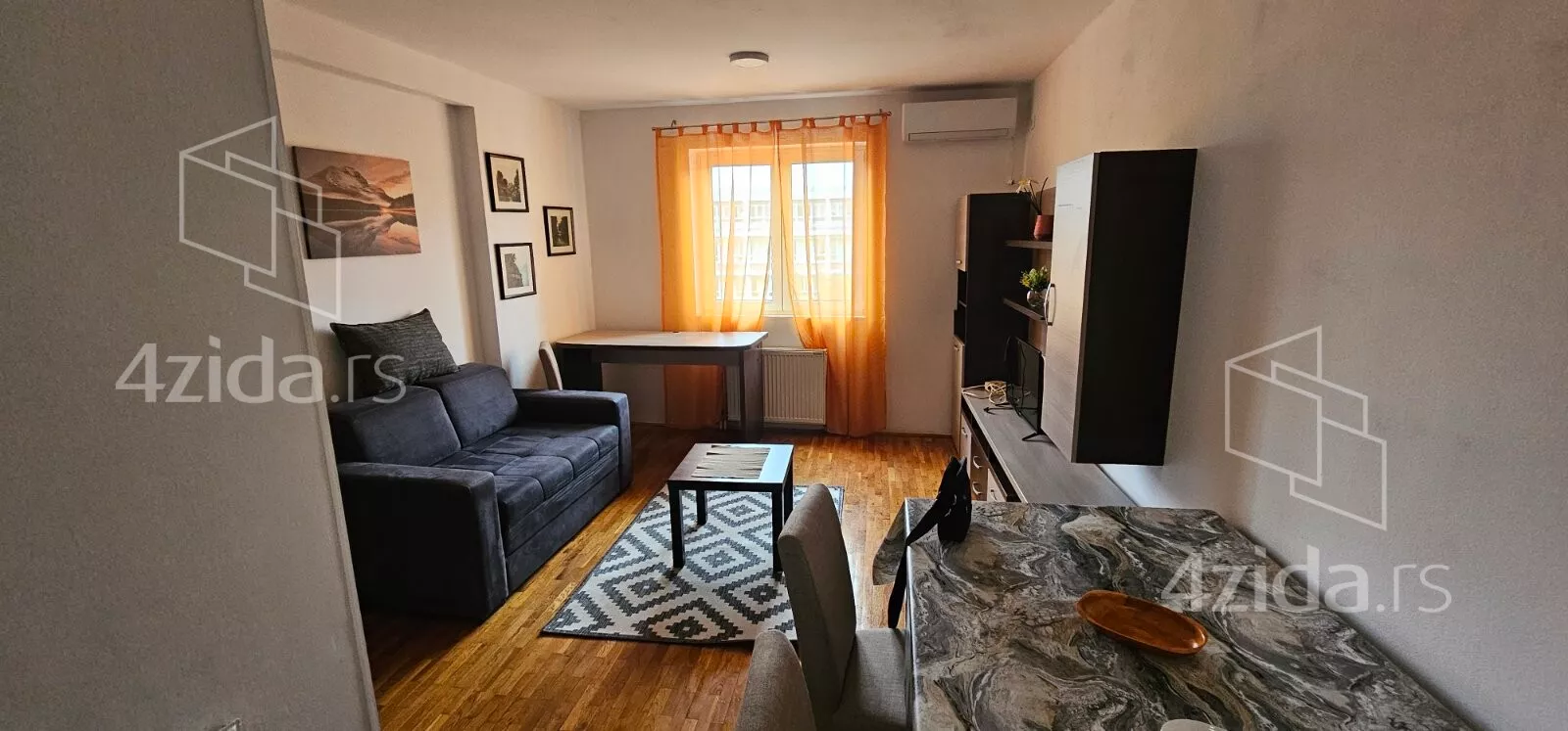 - Opremljenost: Namešteno - internet, TV, klima, kuhinjski elementi, frižider, zamrzivač, mikrotalasna rerna, šporet, rerna, ležaj, plakar, kancelarijski nameštaj