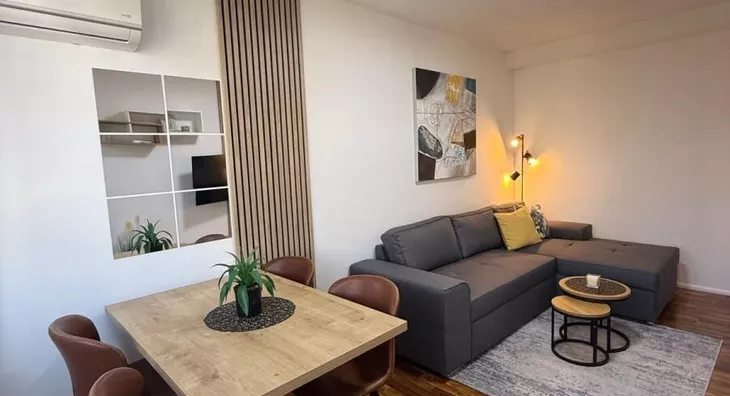 - Opremljenost: Namešteno - klima, veš mašina, kuhinjski elementi