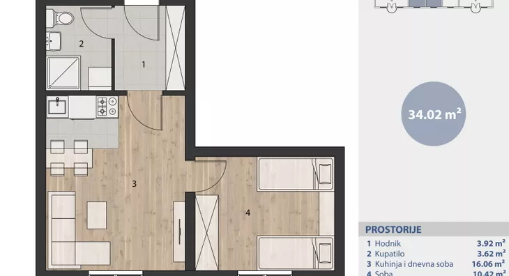 Sve to stvara živopisno i aktivno okruženje koje kombinuje udobnost, funkcionalnost i visok turistički potencijal – kako za odmor, tako i za investiciju. U ponudi je lux stambeno-poslovni objekat sa smeštajnim kapacitetom od 24 apartmana i dva lokala, koji ispunjava sve najsavremenije standarde izgradnje: Spoljna demit fasada i unutrašnja izolacija kamenom vunom Prvoklasna PVC stolarija sa ALU roletnama Kupatila i kuhinje sa kvalitetnom podnom i zidnom keramikom Tarkett–parket u svim prostorijama Etažno grejanje Parking mesta ispred objekta (kupuje se posebno) U ponudi je i apartman dupleks, jednoiposobne strukture, koji se nalazi u potkrovlju objekta i prostire se na dva nivoa. Prvi nivo čine ulazni hodnik, kupatilo, dnevni boravak sa kuhinjom i trpezarijskim delom, dok stepenice postavljene u uglu dnevne sobe vode na galeriju gde je predviđena spavaća soba. Završetak radova i mogućnost useljenja planirani su do kraja 2026. godine. Napomena: prikazani rasporedi nameštaja su ilustrativni i predstavljaju samo jedan od mogućih predloga uređenja prostora – kupci imaju potpunu slobodu organizacije u skladu sa sopstvenim željama i potrebama.
