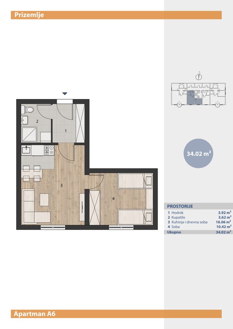 Jednoiposoban stan na prodaju, Novogradnja, Brzeće, 68040€, 34.02m²